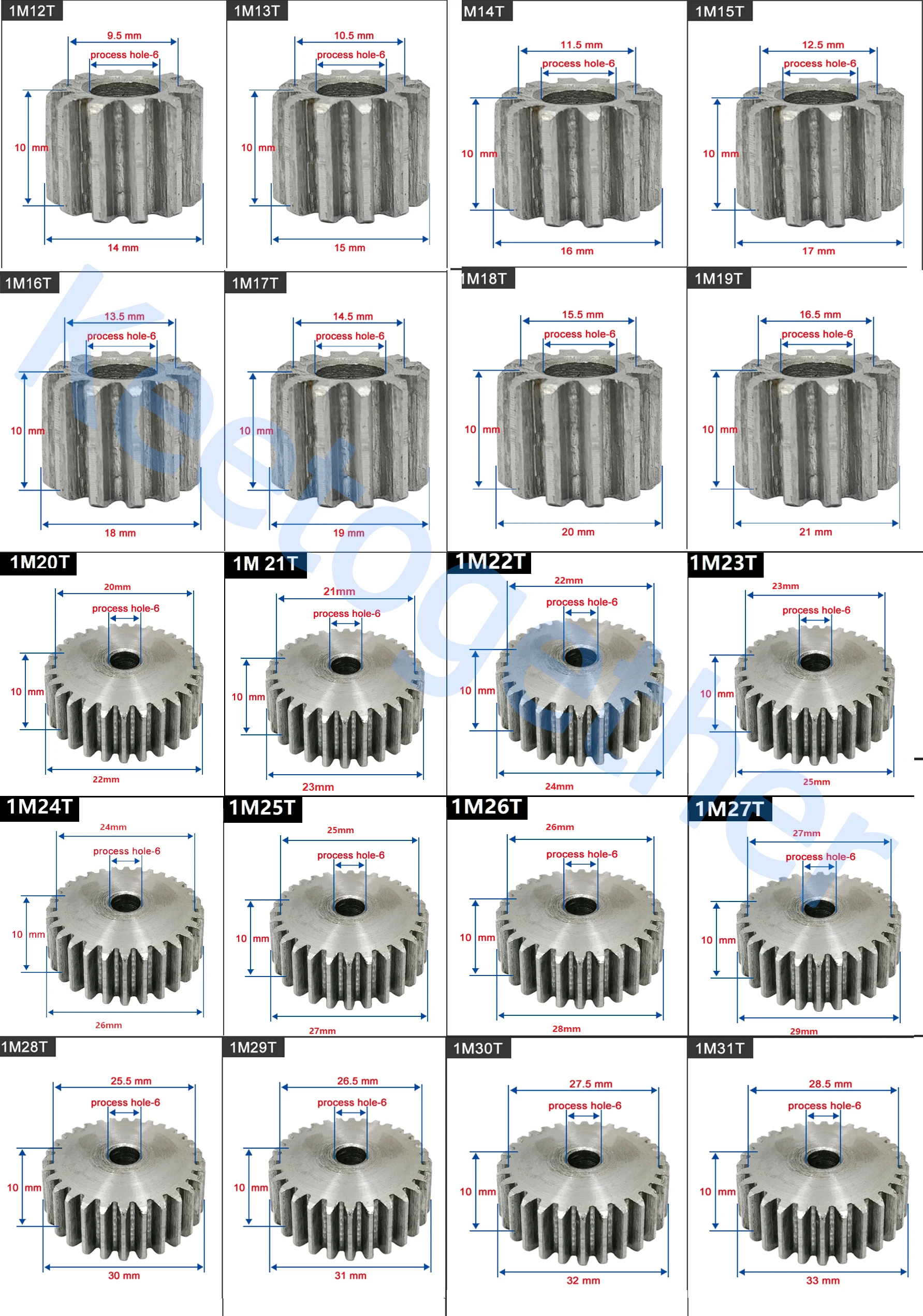 Зубчатая шестерня 1 шт., металлическая трансмиссия, 1 м, 12 т-28 т, 45 # сталь, 1 Модуль 12, 13, 14, 15, 16, 17, 18, 19, 20, 25, 30 зубьев