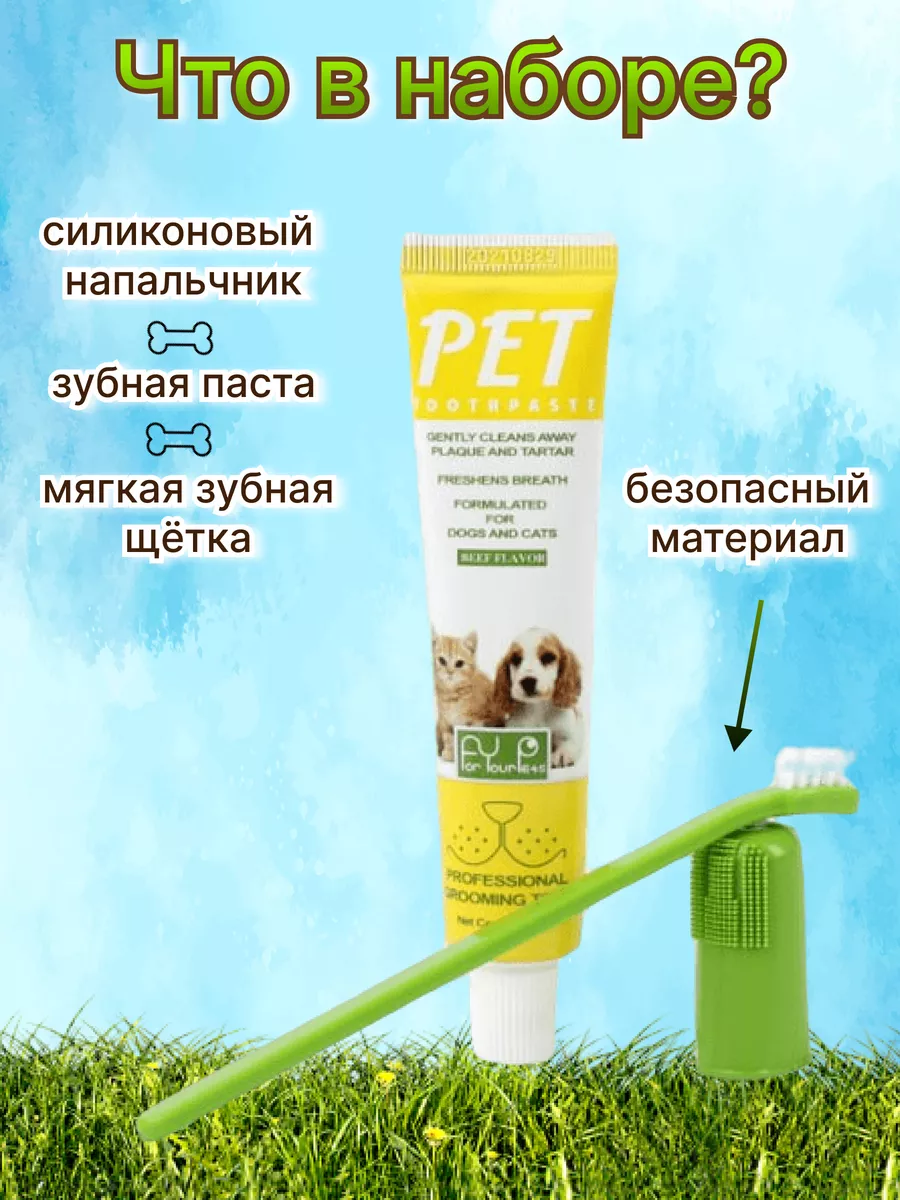 Артикул 170333778 Количество предметов в упаковке 2 зубные щетки для животных; 1 тюбик зубной пасты для животных; набор из 3 штук