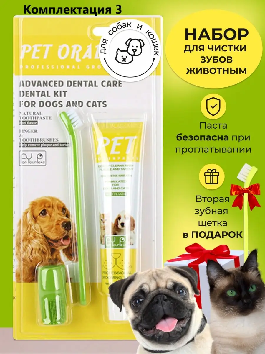 Зубная паста и щетка для собак кошек, гигиенический набор