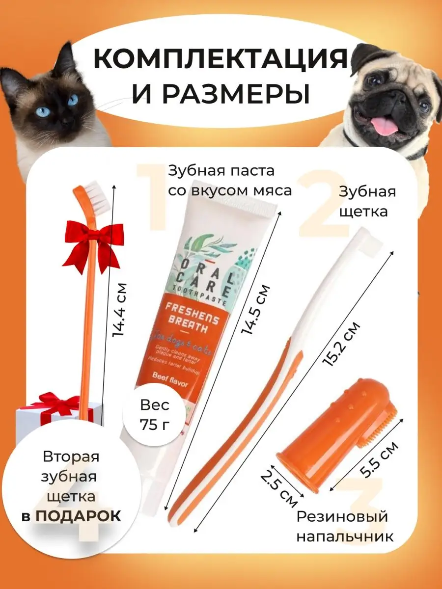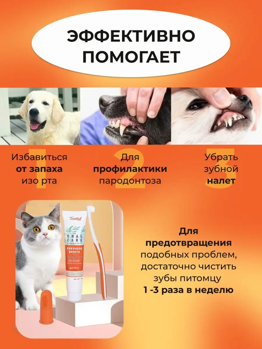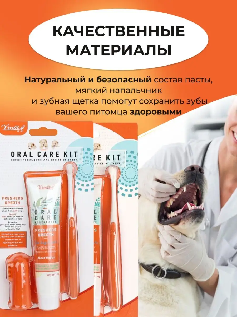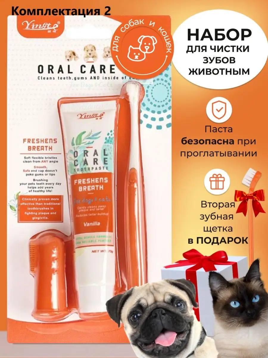 Зубная паста и щетка для собак кошек, гигиенический набор