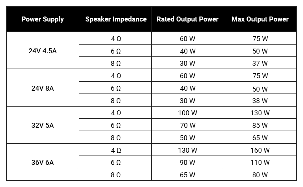 • BT30D Pro Использует 2PCS Texas Instruments TPA3255 высокопроизводительный чип усилителя мощности класса D. BT30D Pro может управлять мощностью до 2x175 Вт при нагрузке 4 Ом и 2X220 Вт при нагрузке 3 Ом. В дополнение к отличному качеству звука, TPA3255 обеспечивает как высокую энергоэффективность, так и очень низкие потери на холостом ходу сцены ниже 1 Вт. Это достигается за счет использования МОП-транзисторов 60 мОм и оптимизированной схемы драйвера вентиля, которая обеспечивает значительно более низкие потери холостого хода, чем типичные дискретные реализации.