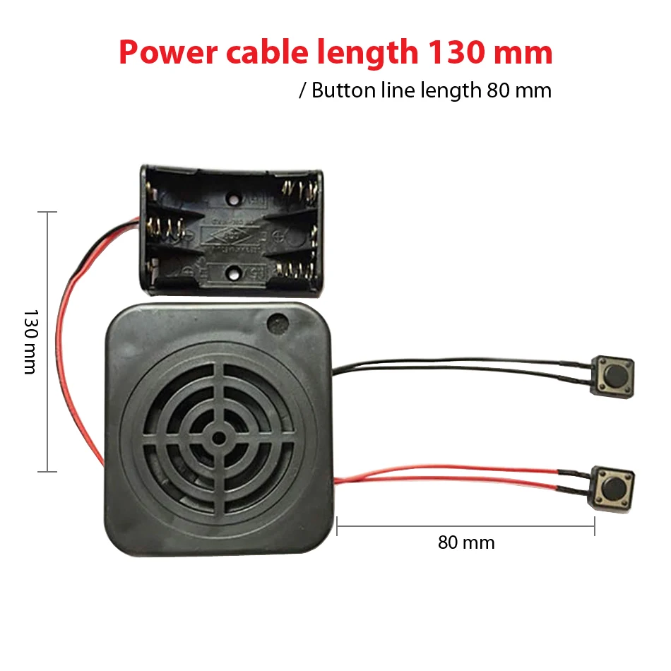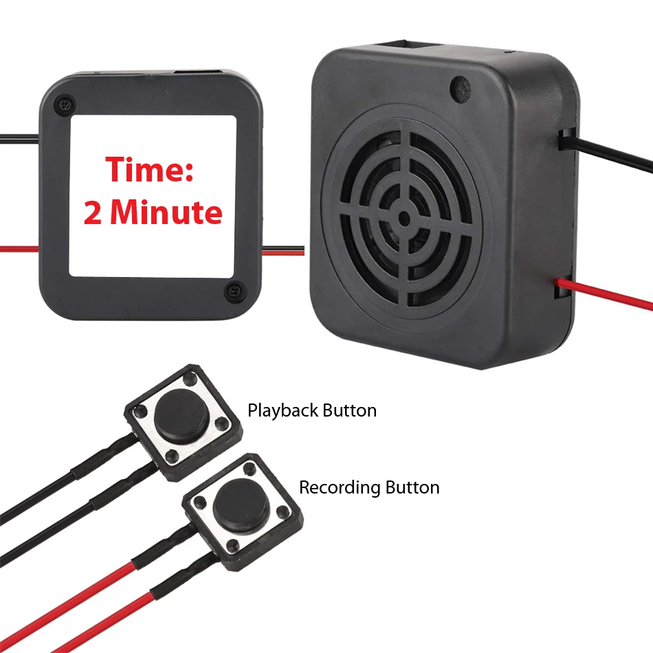 2 кнопки управления-Красная кнопка используется для записи, а черная кнопка используется для воспроизведения. Кнопка воспроизведения: Нажмите кнопку, чтобы начать воспроизведение записанного звука (черный с кнопкой). Кнопка записи: красный с линией кнопок.