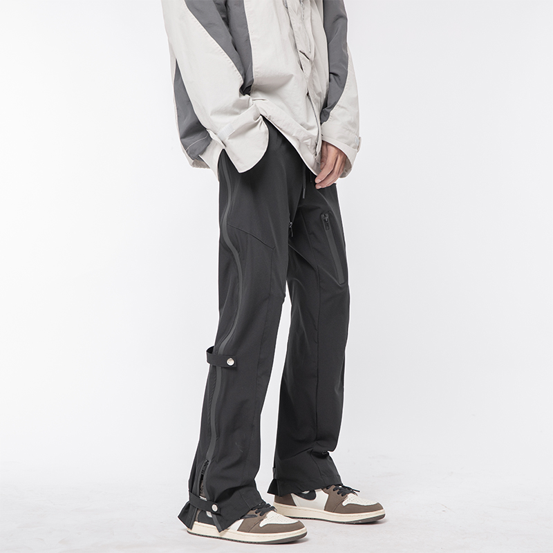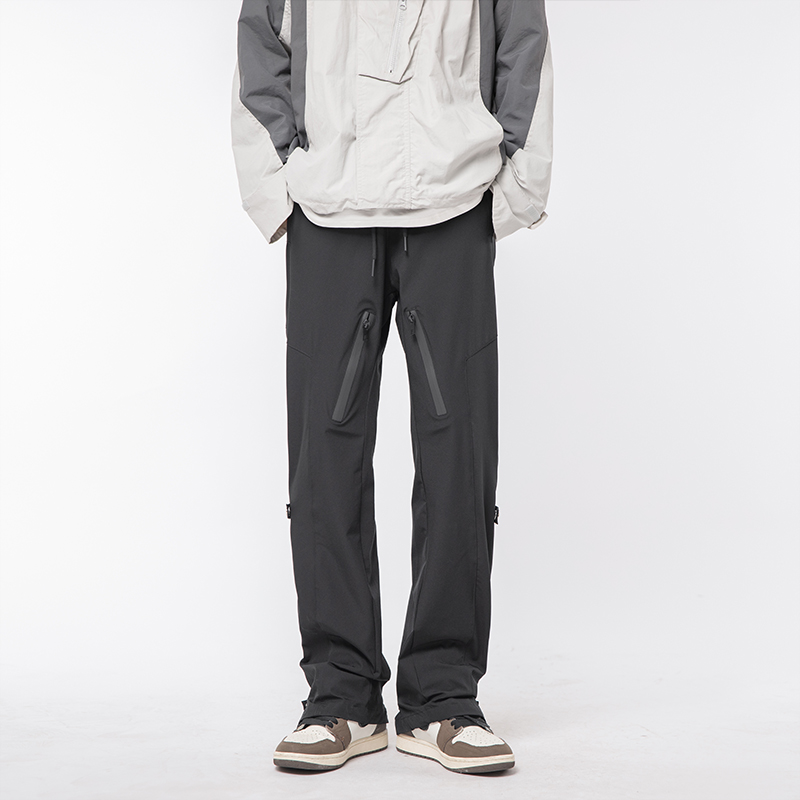 美式高街衝鋒褲女春秋防水工裝拉鍊褲子機能風直筒顯瘦休閒褲潮