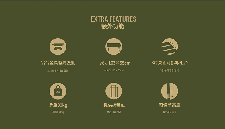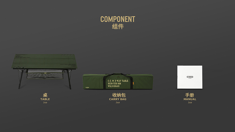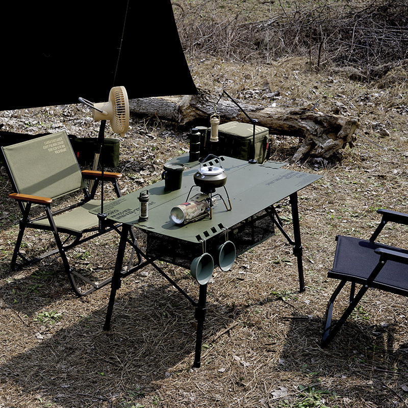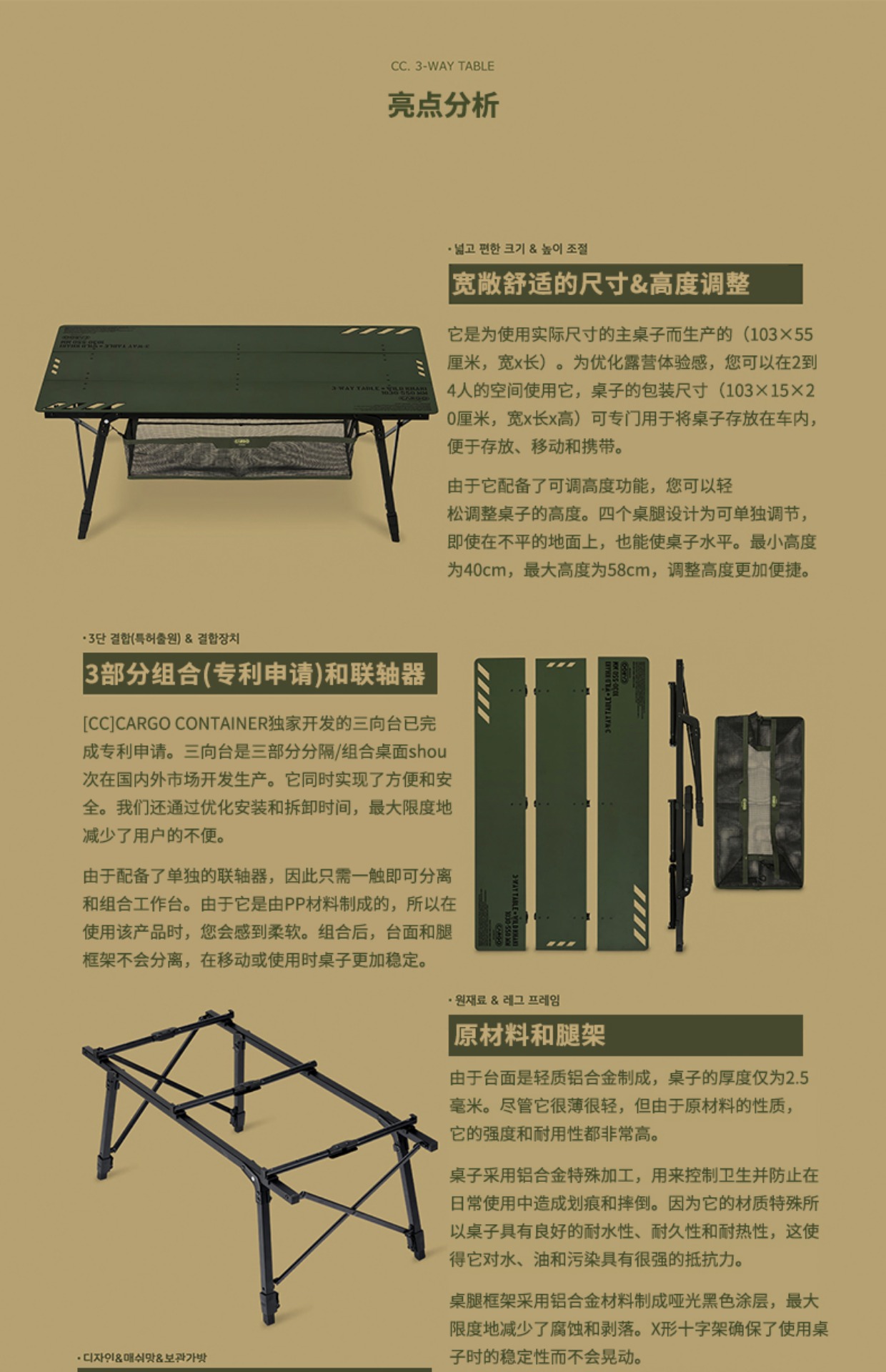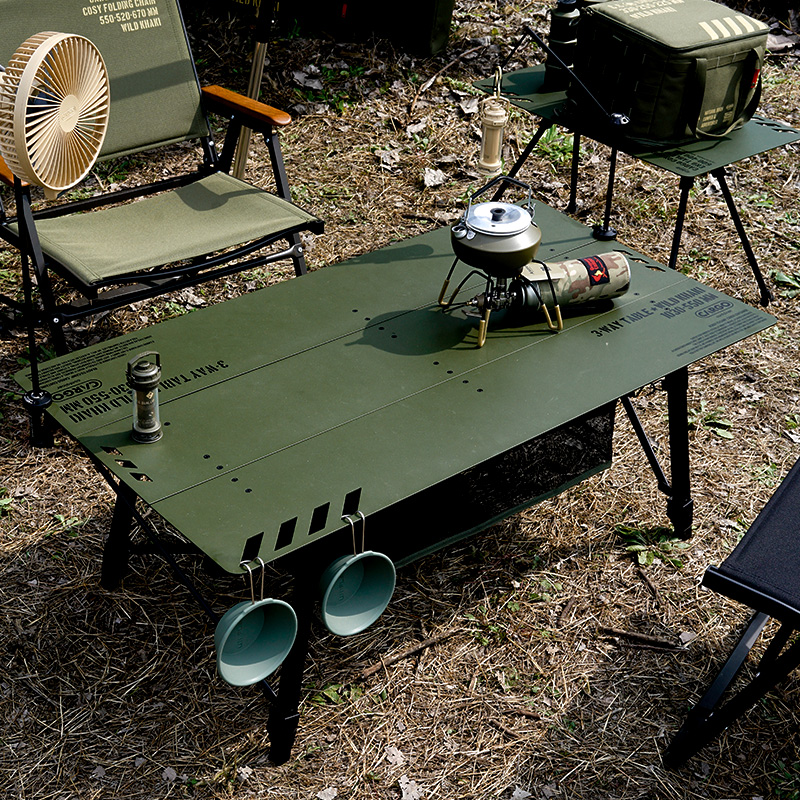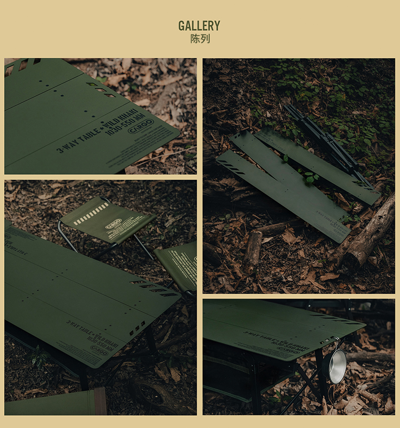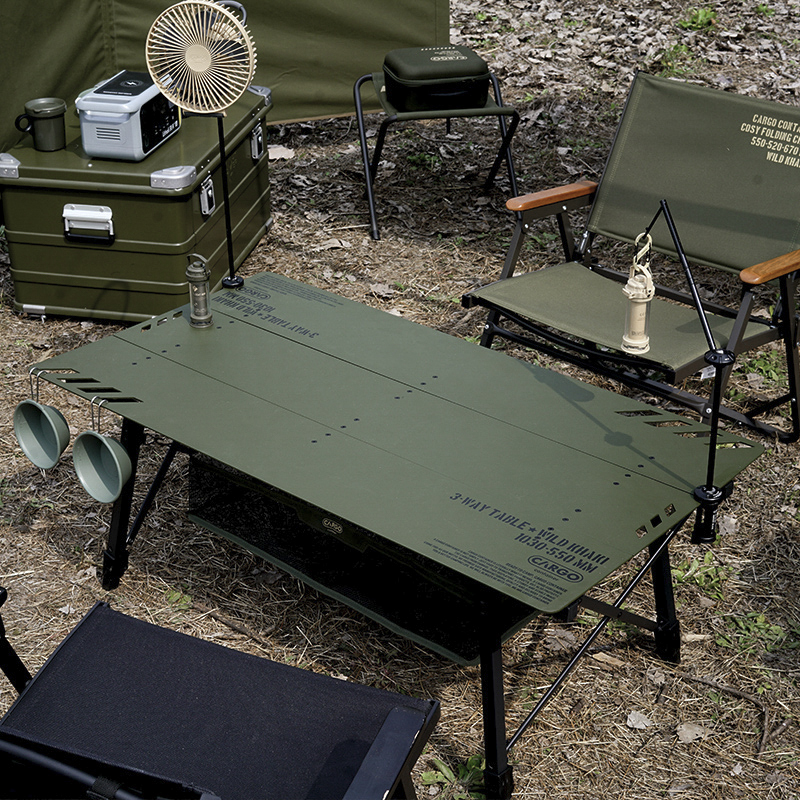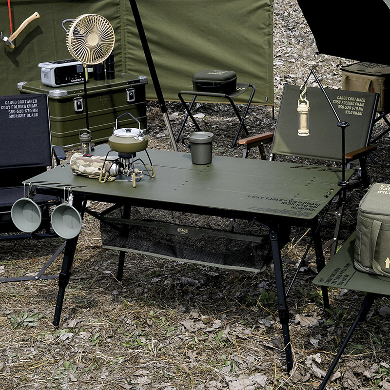 韓國CARGO桌子戶外軍事風露營大號三片桌戰術摺疊桌軍綠桌椅組合