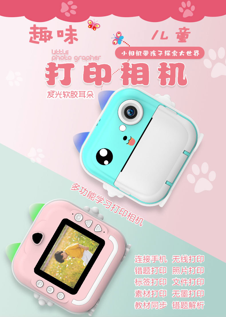 跨境新品Q5拍立得儿童数码相机可爱迷你小孩高清打印照相机礼物