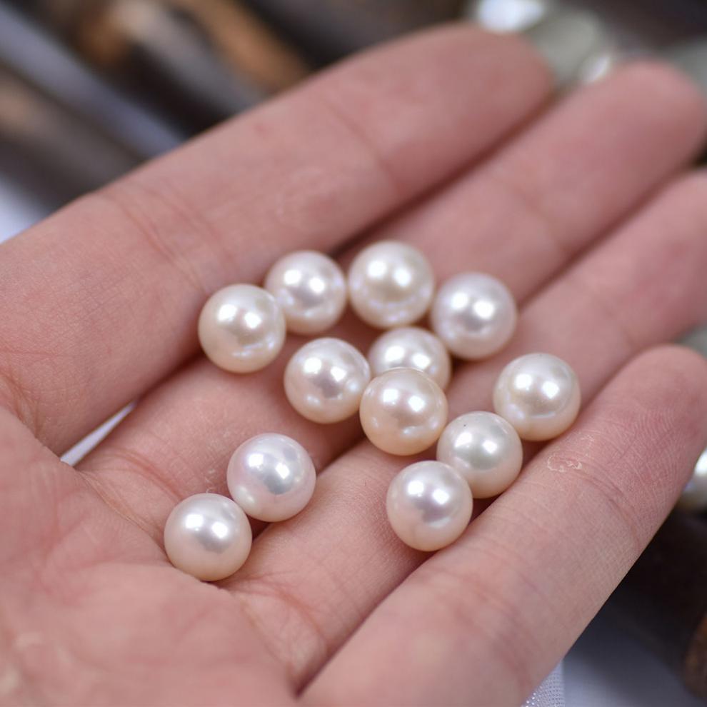 诸暨珍珠批发淡水真近圆有孔DIY穿手链项链散珠裸珠厂家一件代发