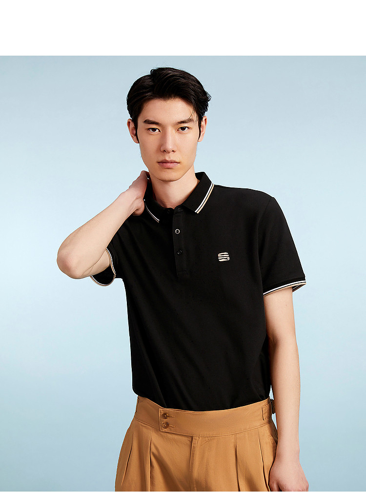 HLA/海瀾之家polo衫男T恤2023夏時尚休閒簡約翻領商務上衣短袖男