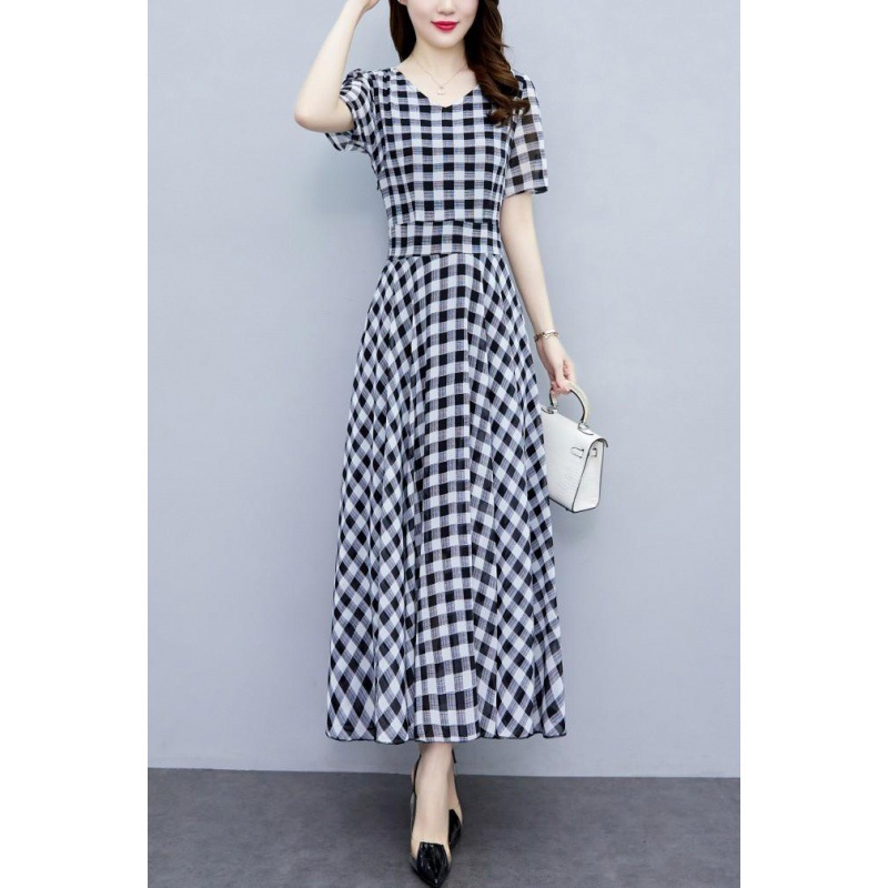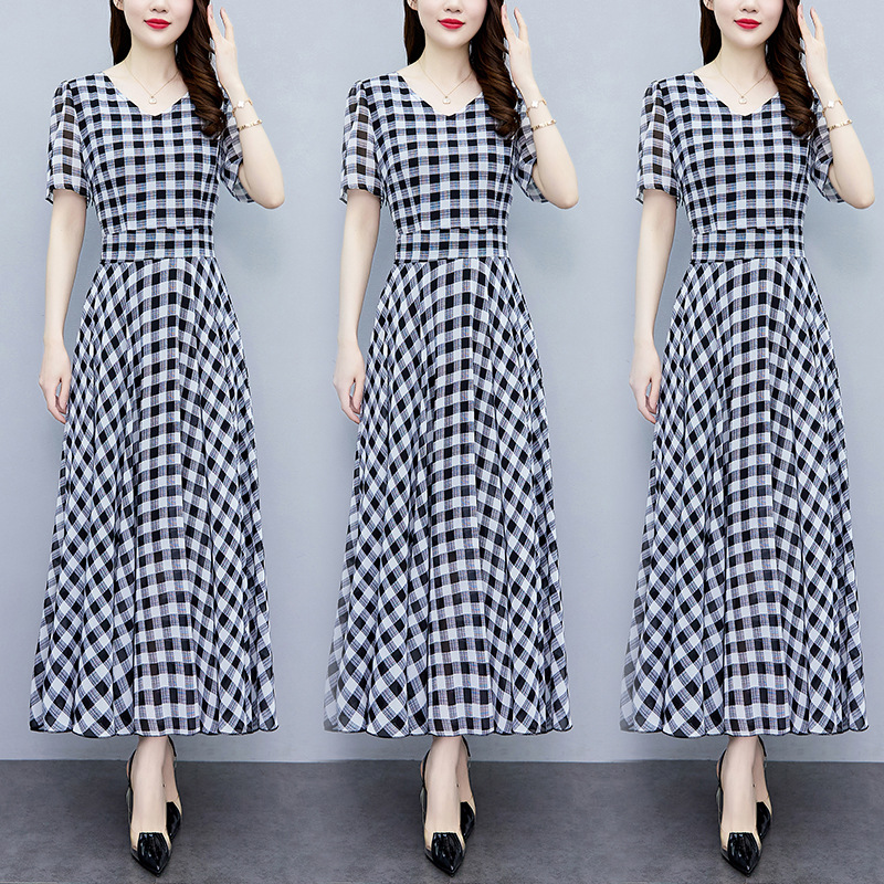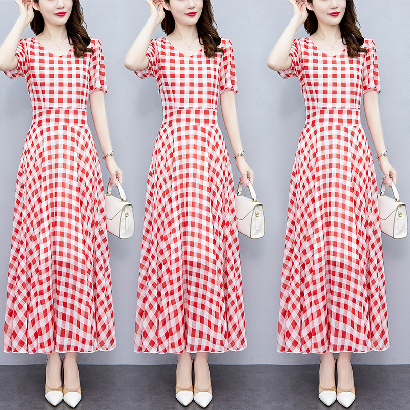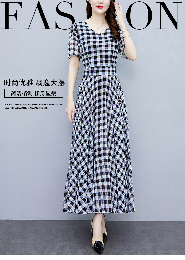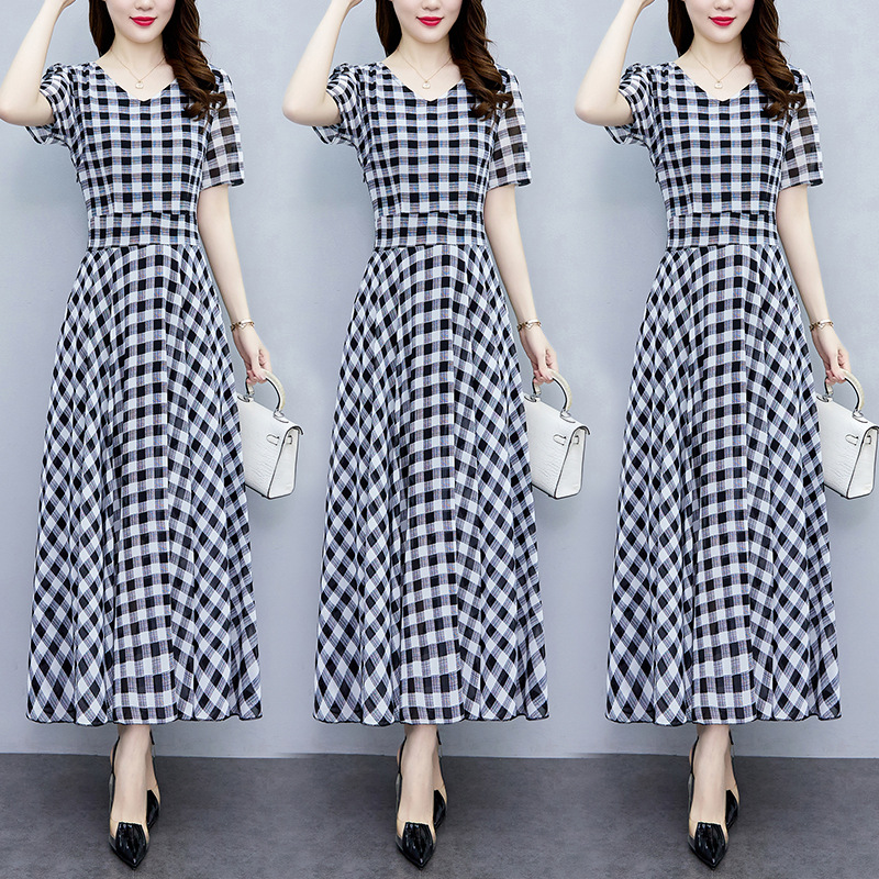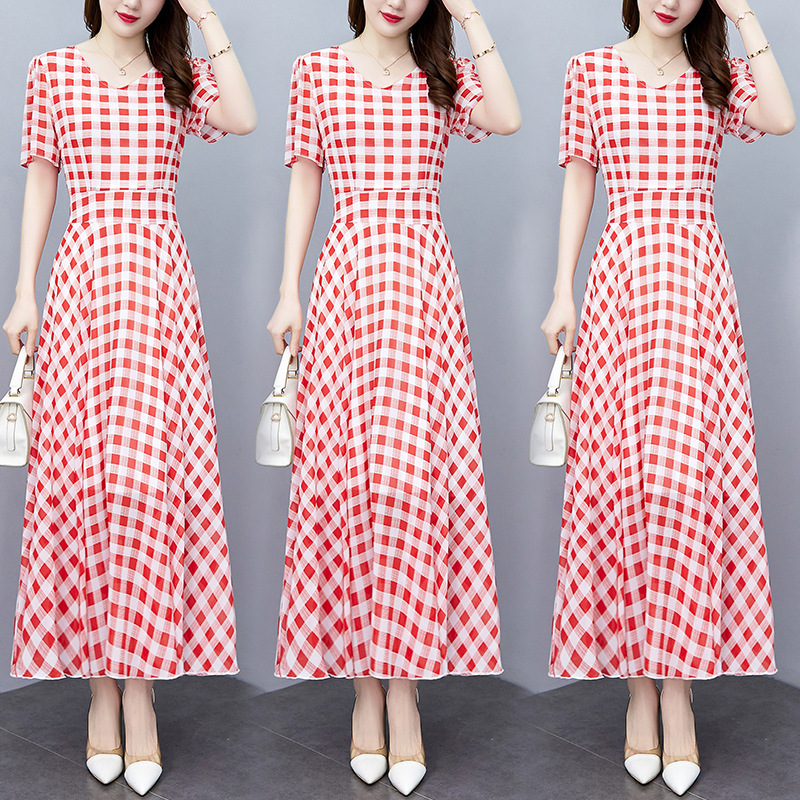 2023夏季新款高档碎花雪纺连衣裙长款大码胖mm收腰显瘦遮肚子长裙
