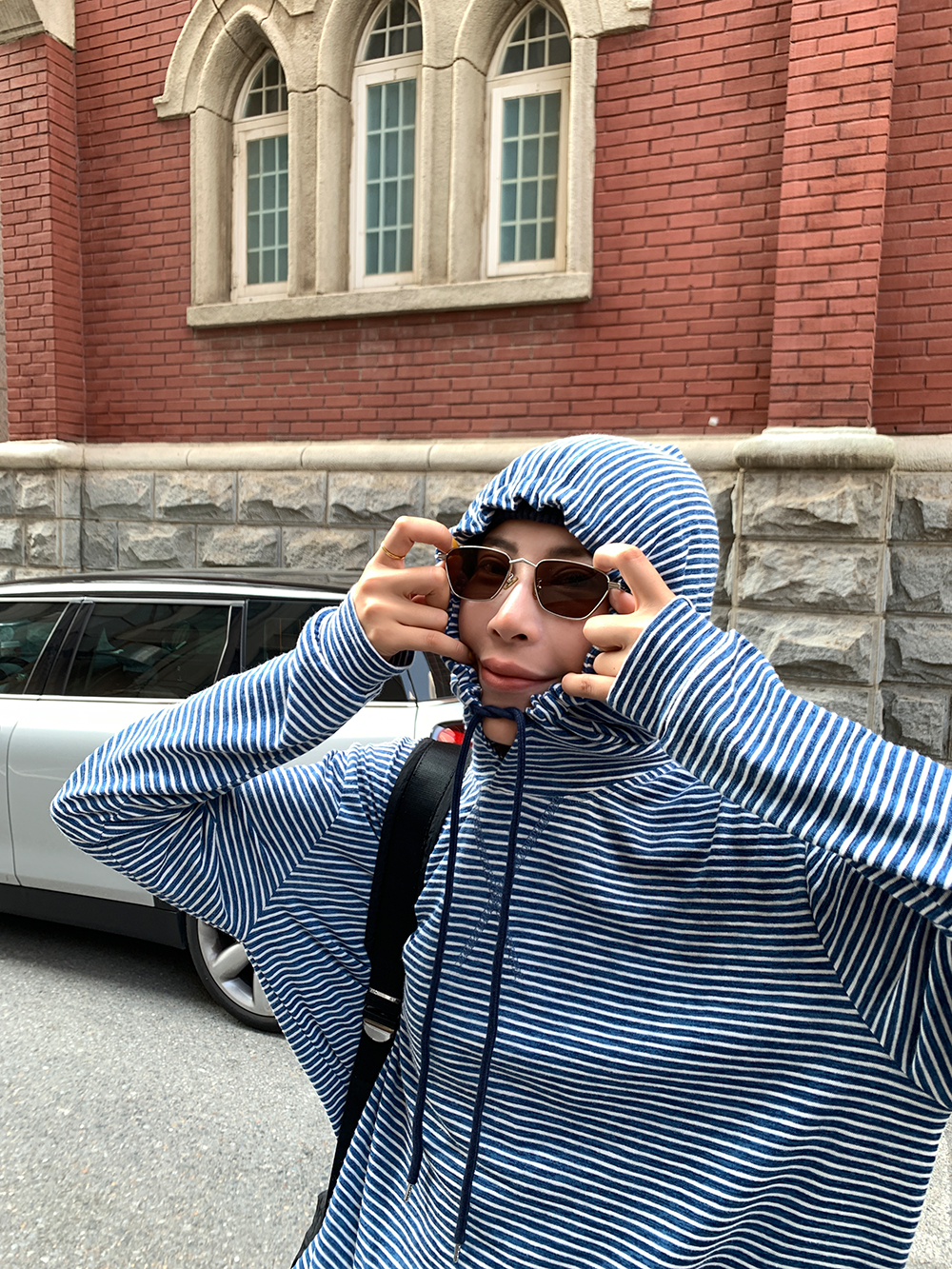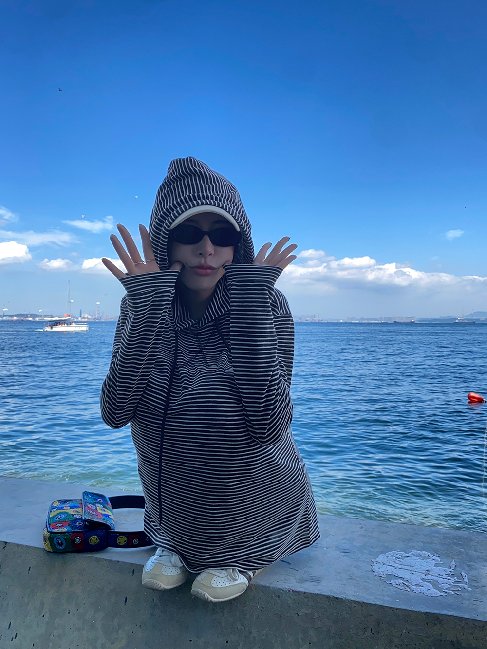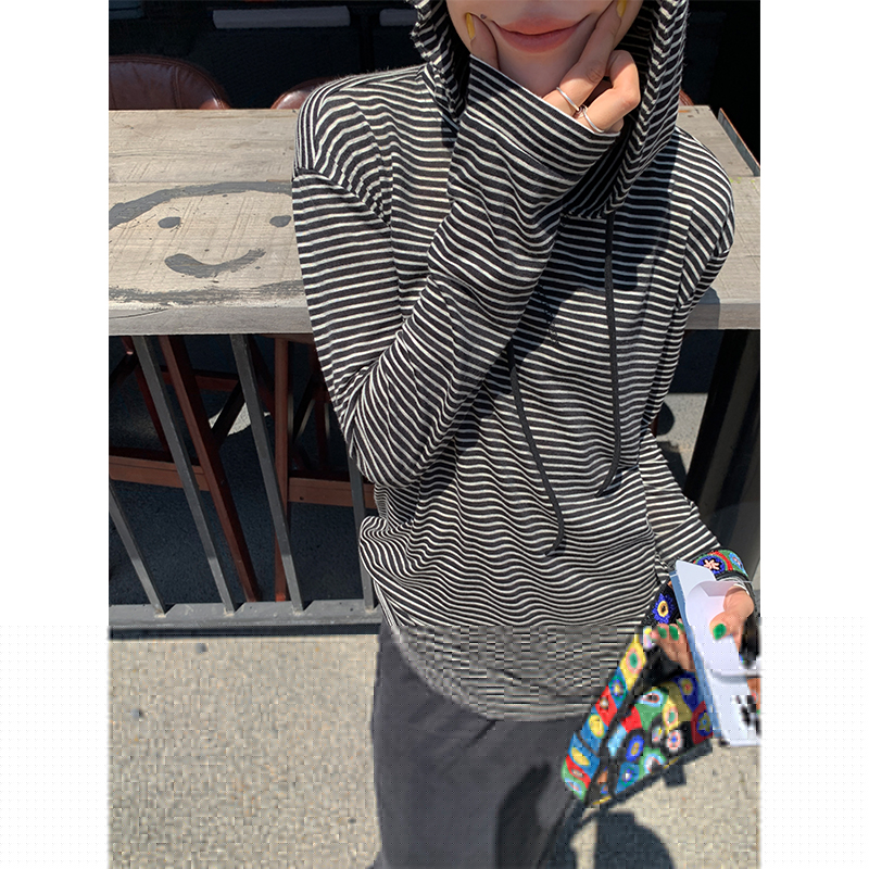 2023新款春秋爆款連帽短款慵懶風寬鬆長袖T恤套頭早秋薄款厚棉T女