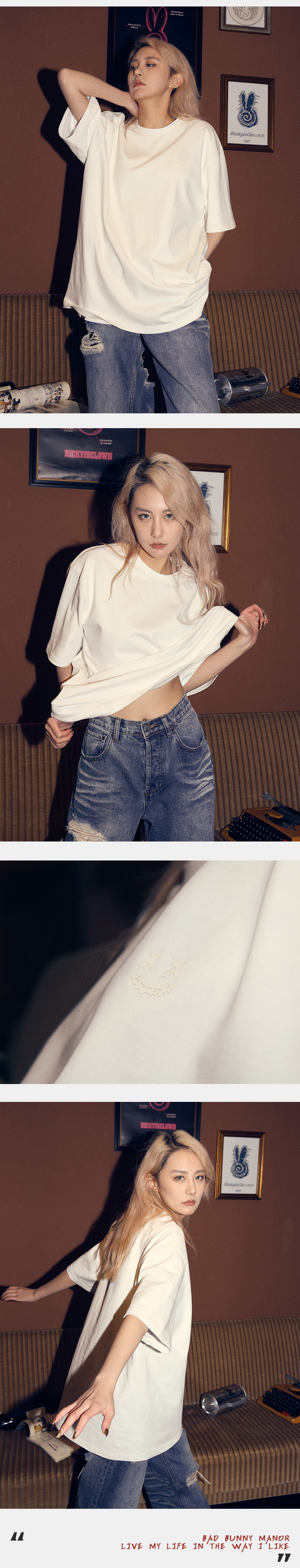RickyisClownRiC小醜撕裂笑臉重磅短袖t恤男寬鬆休閒情侶裝潮牌