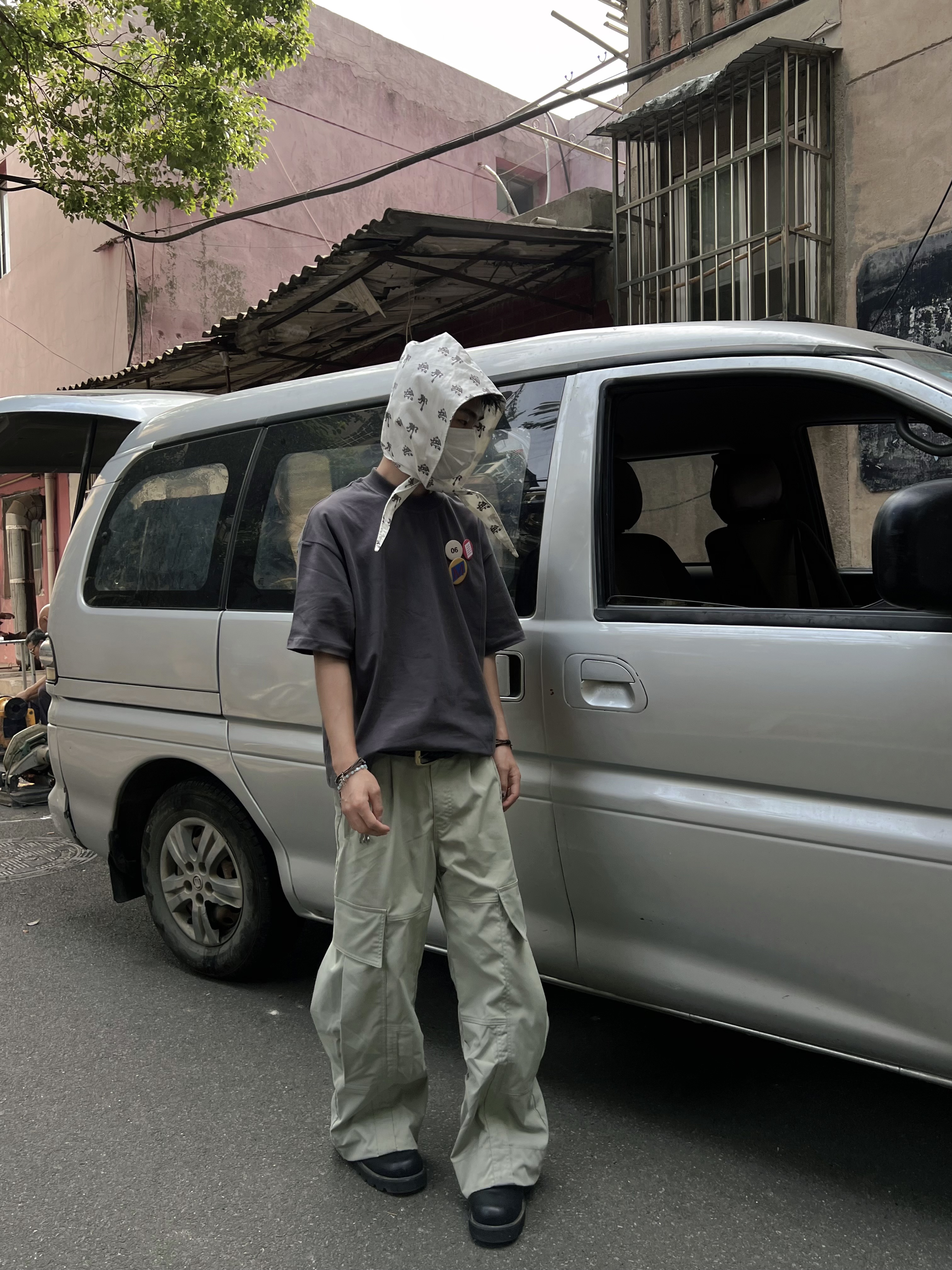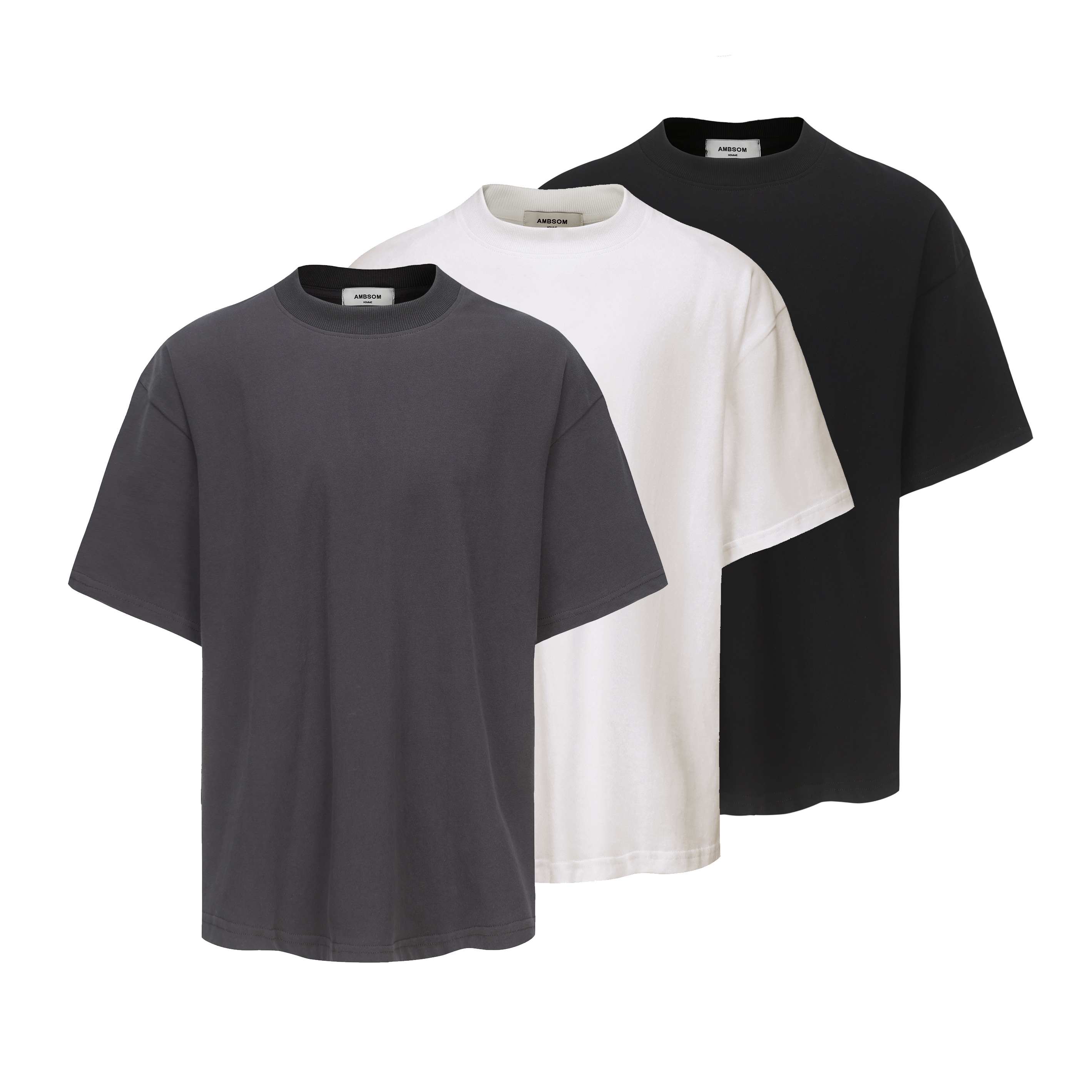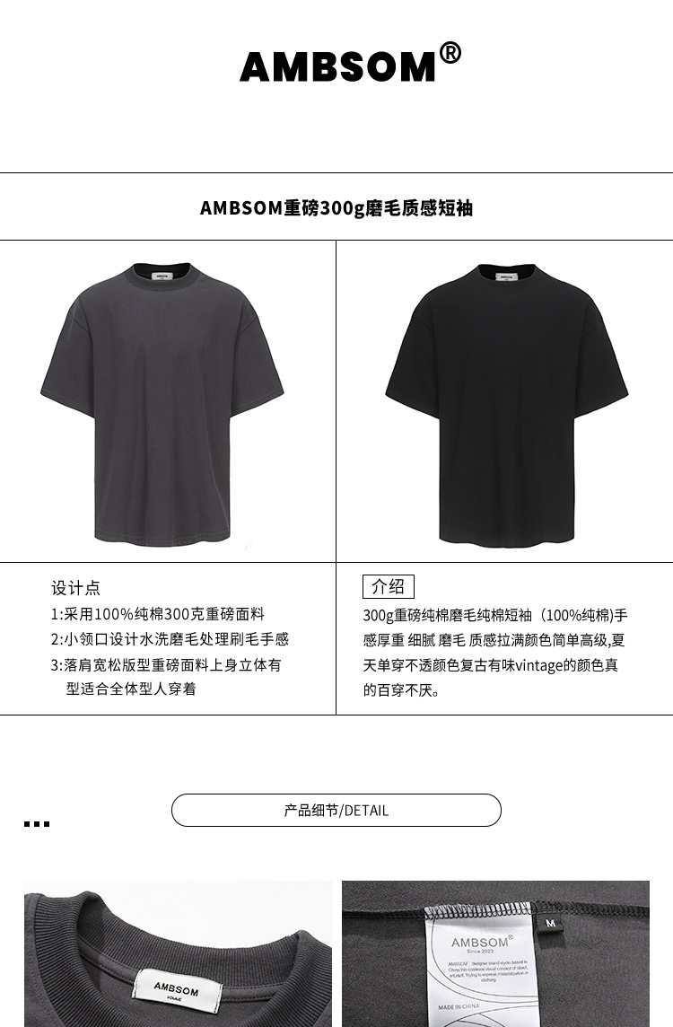 AMBSOM 23SS 300克重磅磨毛質感 做舊水洗小領口純色短袖 基礎T恤