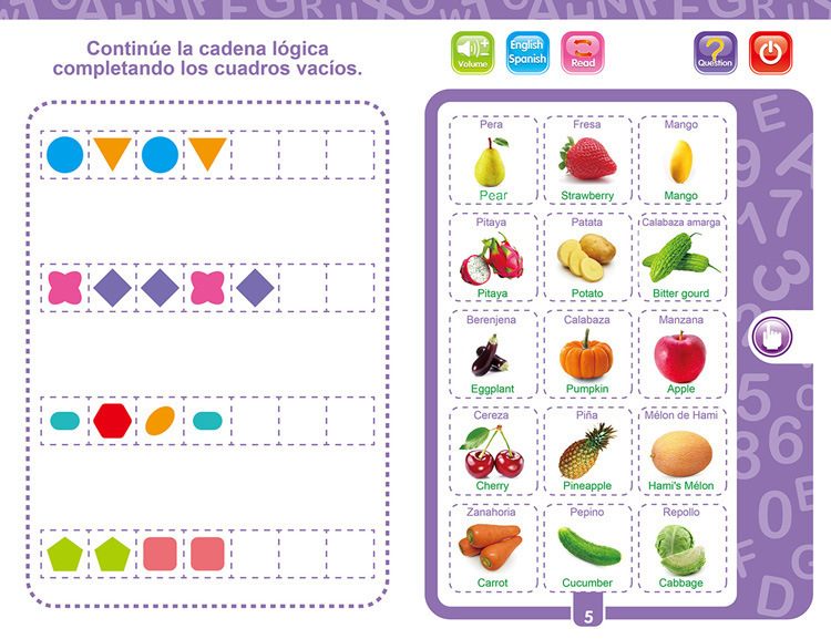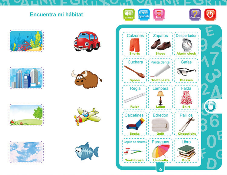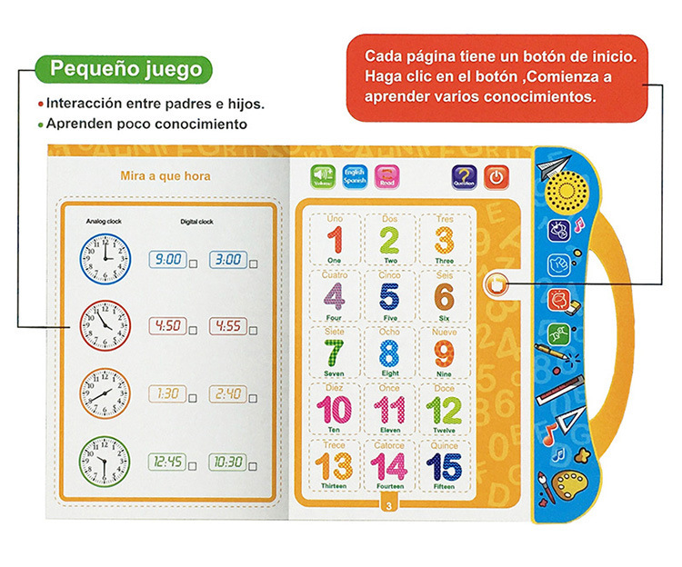 跨境热供西班牙语英语点读书 儿童早教点读书启智智能电子书玩具