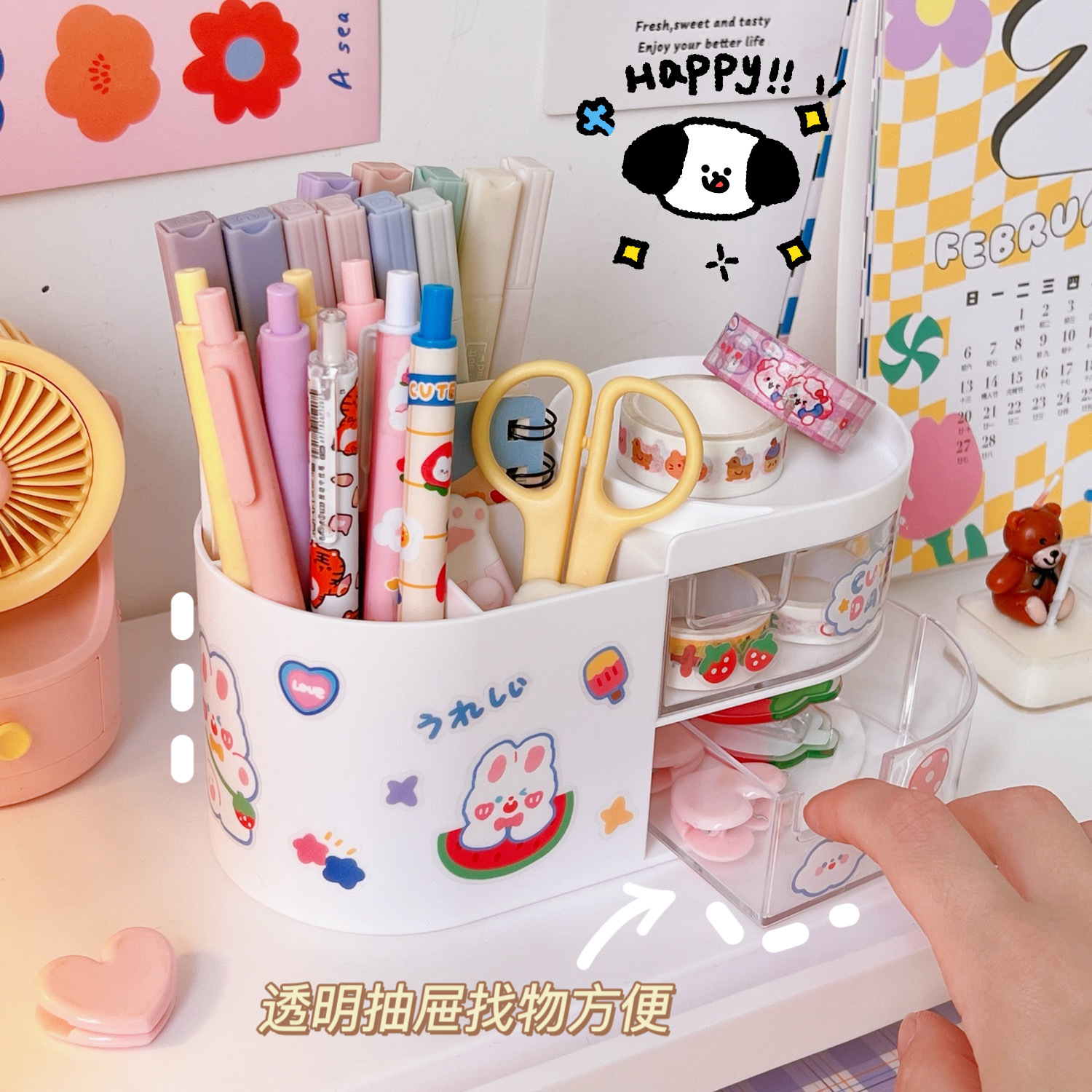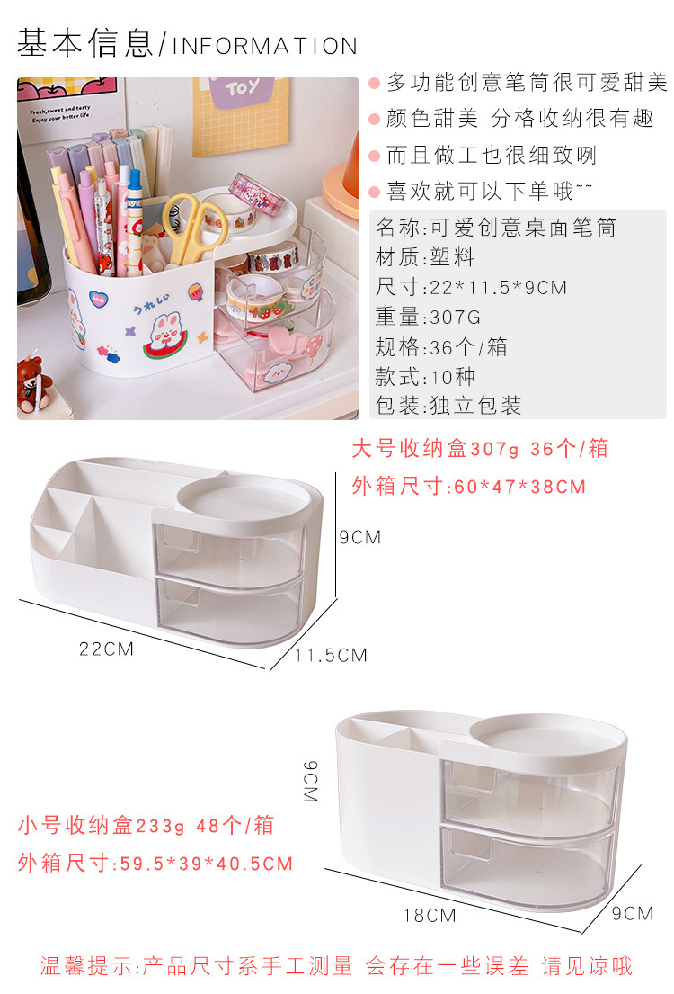 可爱创意笔筒儿童女孩ins风学生办公室桌面时尚大容量文具收纳盒