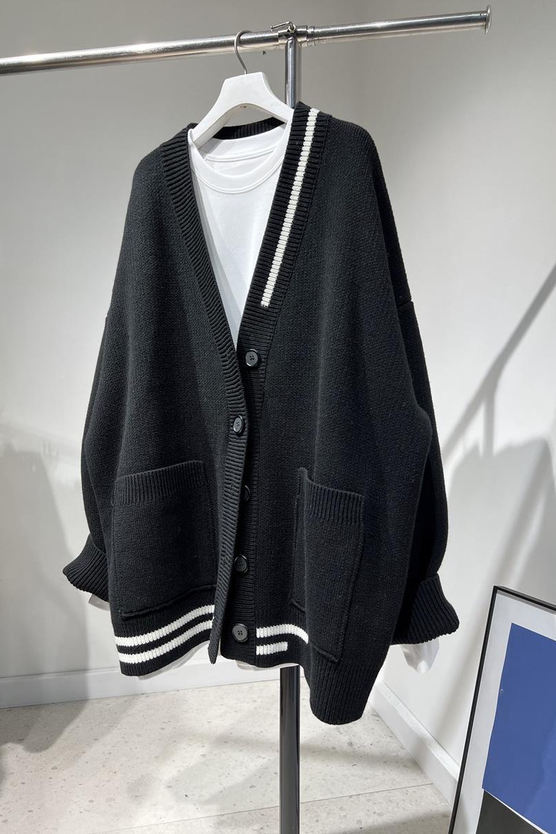 清倉貨撿漏尾單剪標女裝品牌原外貿羊毛拼色寬鬆V領針織開衫外套