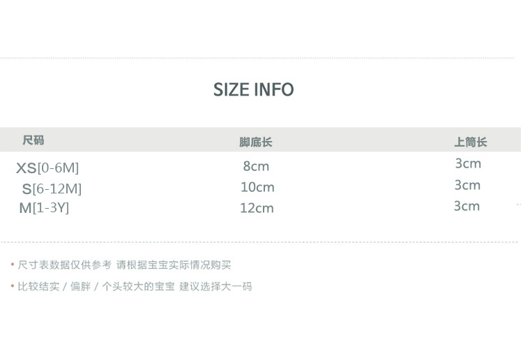童袜尺码 XS码0-6个月,S码6-12个月,M码1-3岁