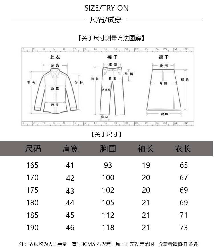 尺碼 165,170,175,180,185,190