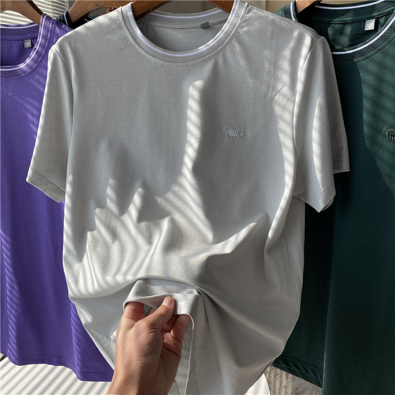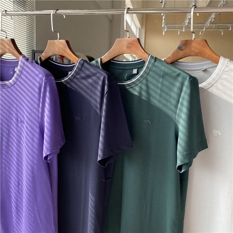 僅售25!撤櫃剪標貨!精緻小牛刺繡!撞色圓領夏季垂順T恤短袖男