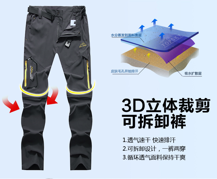 戶外速乾褲男夏季薄款可拆卸彈力兩節褲行山衝鋒褲寬鬆徒步登山哦