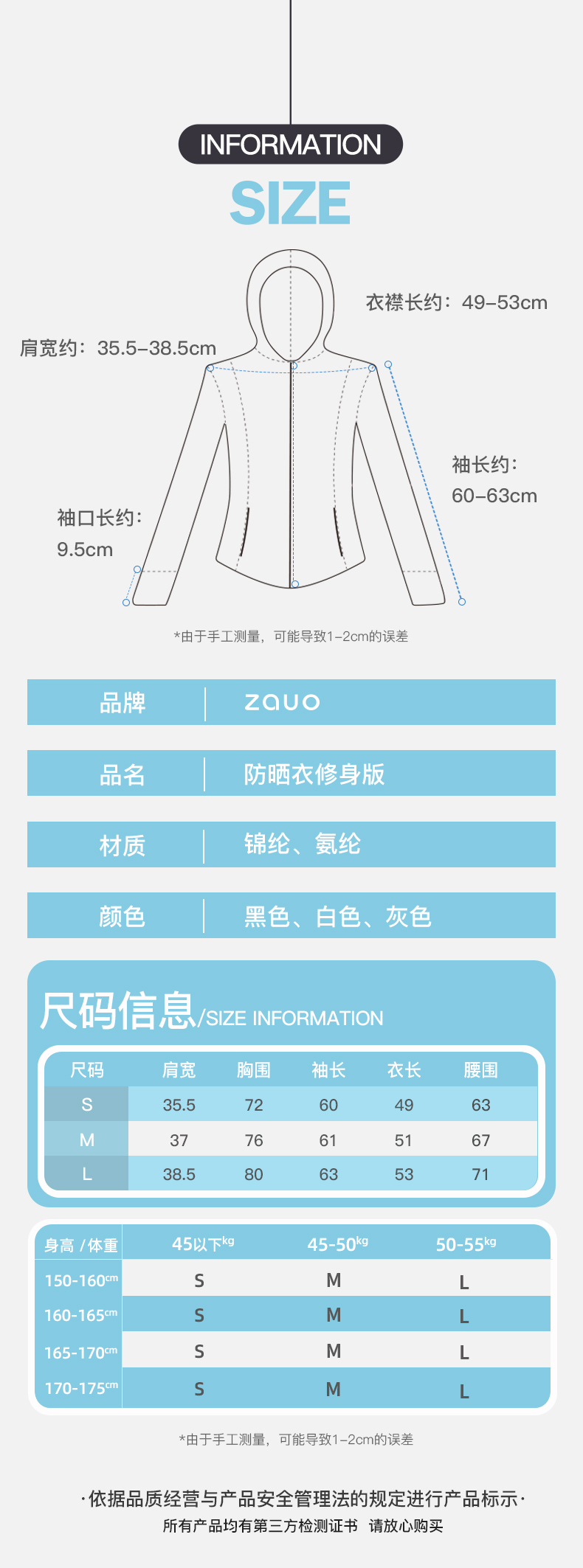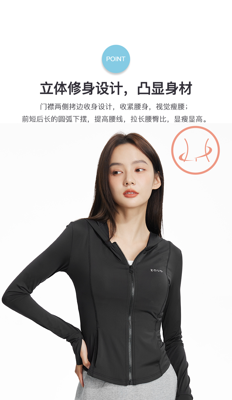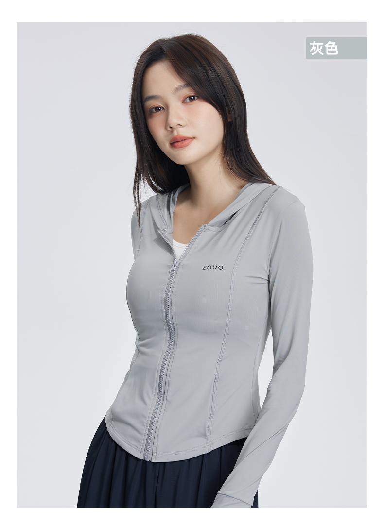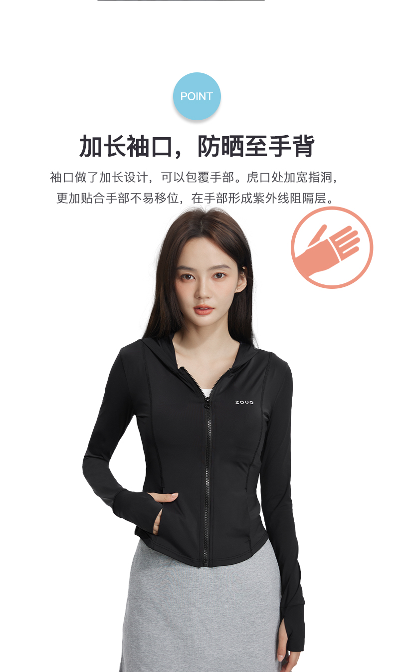 韓國zauo修身防曬衣透氣抗UV原紗型冰感防曬服夏季連帽上衣