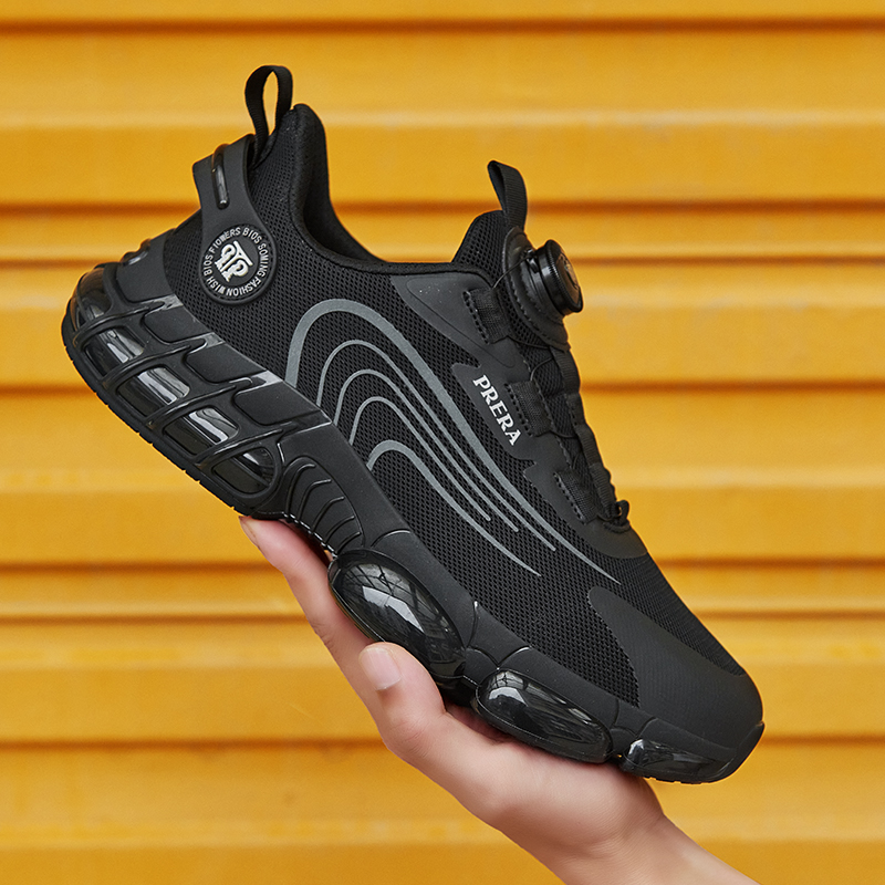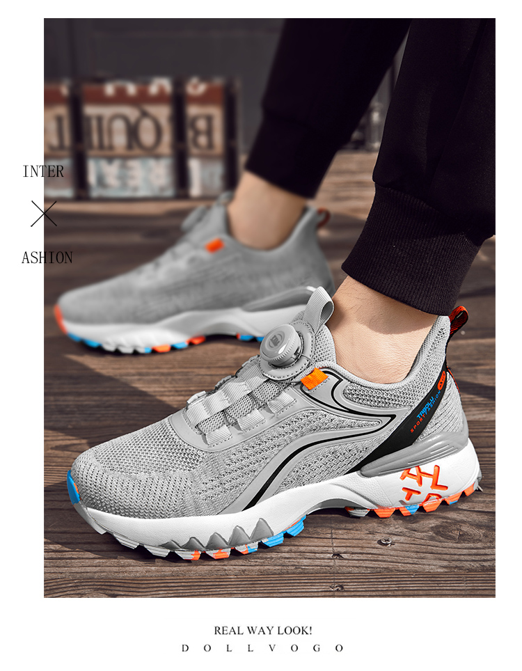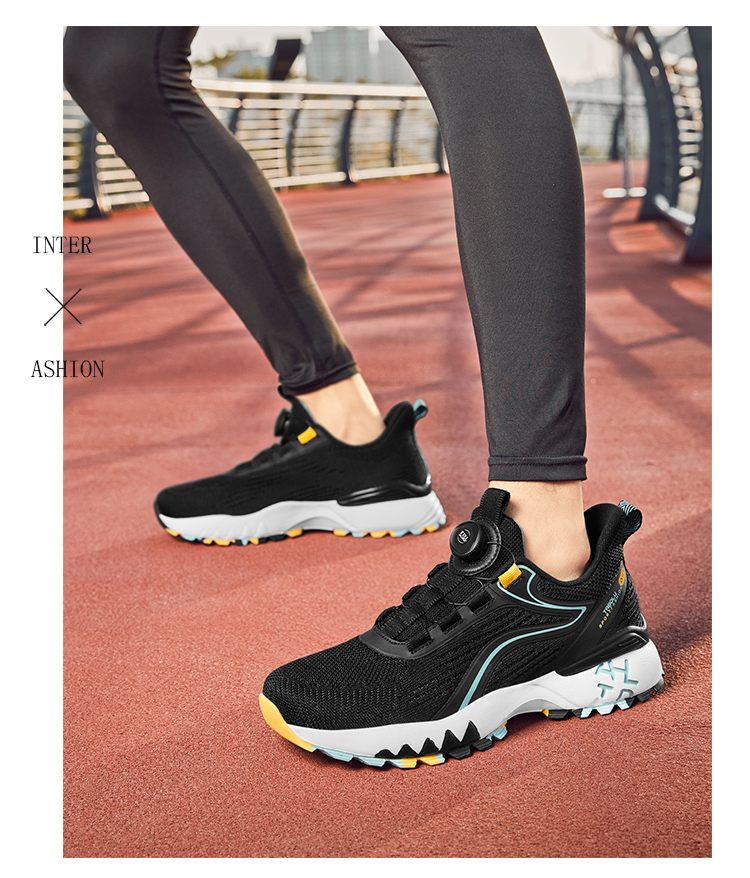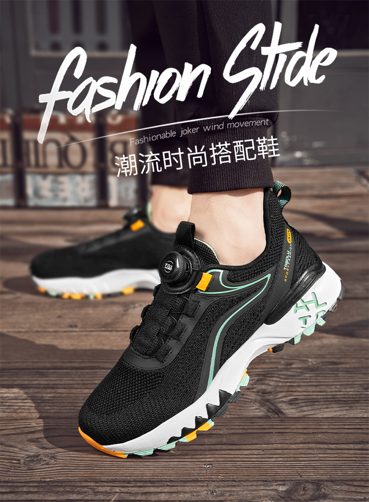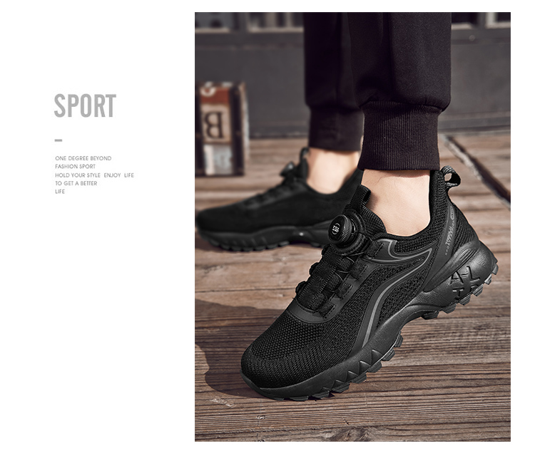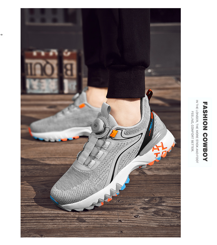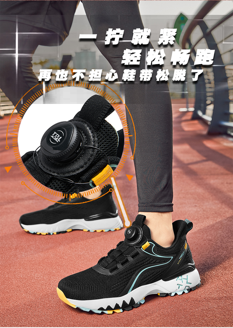 新款旋轉扣免系鞋帶透氣網面跑步鞋男體育生中考專用鞋休閒運動鞋