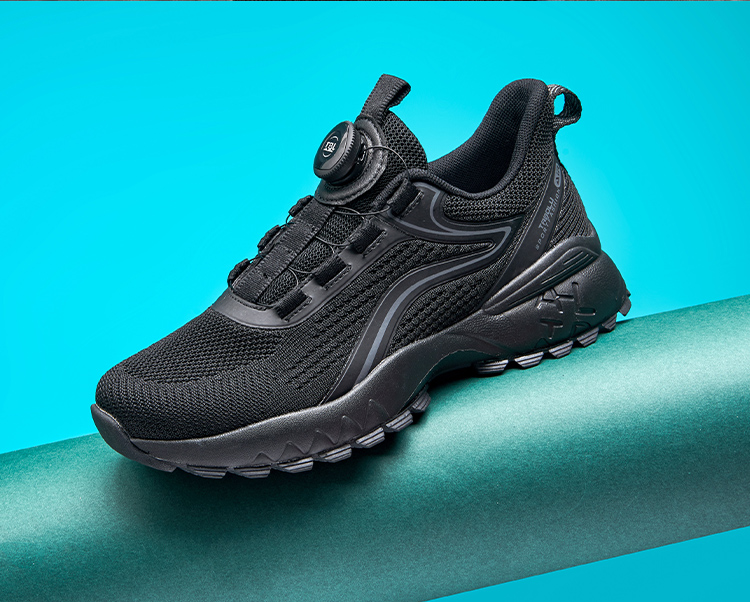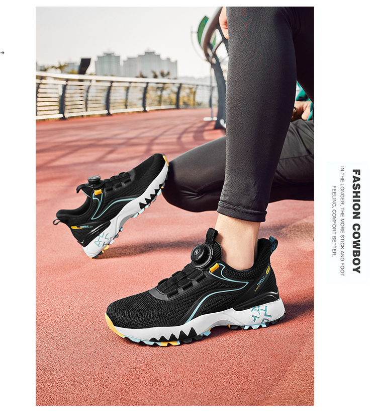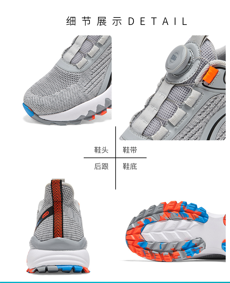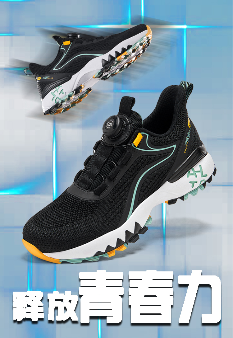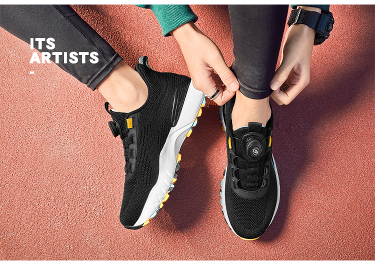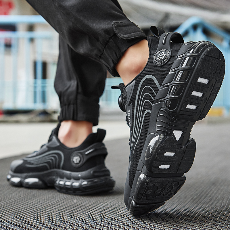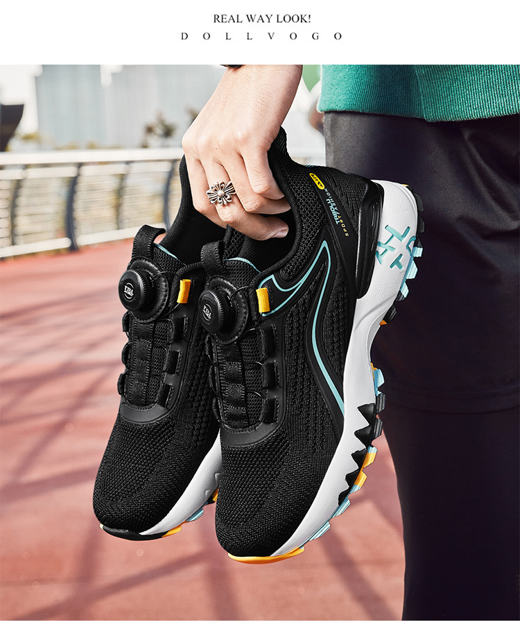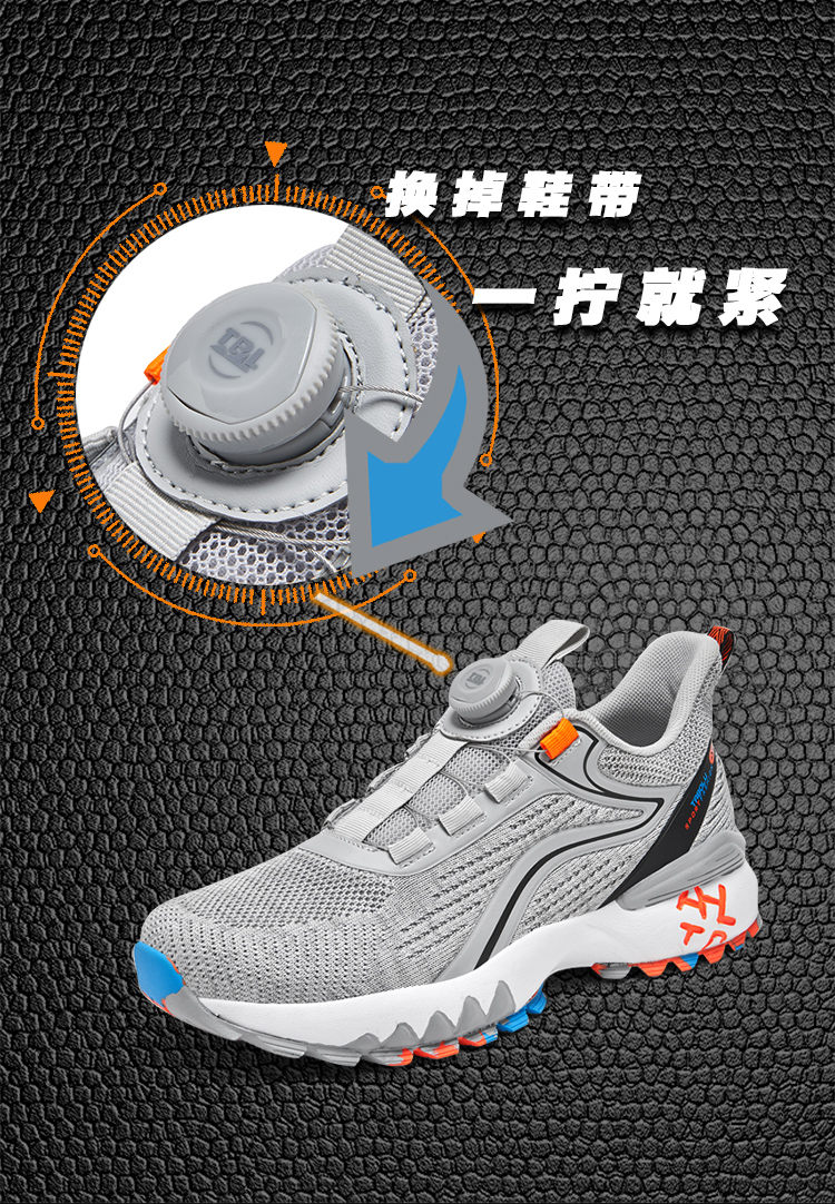 新款旋轉扣免系鞋帶透氣網面跑步鞋男體育生中考專用鞋休閒運動鞋