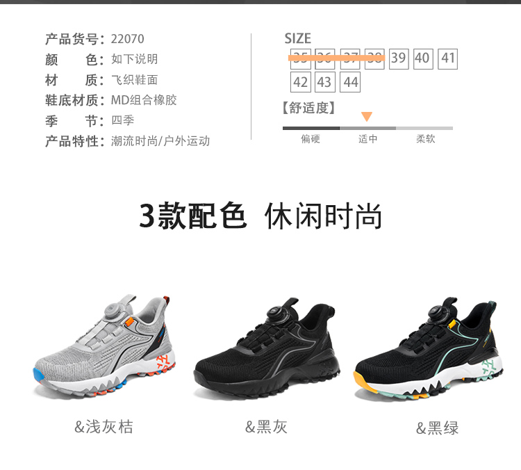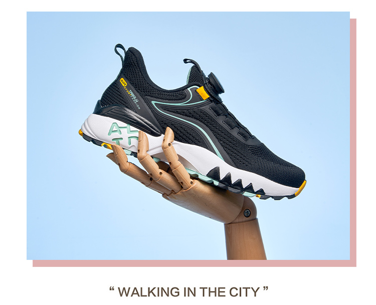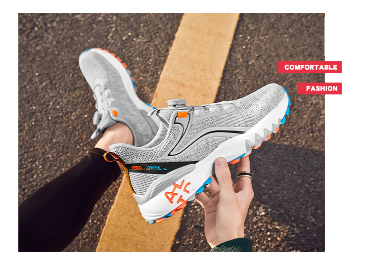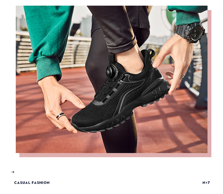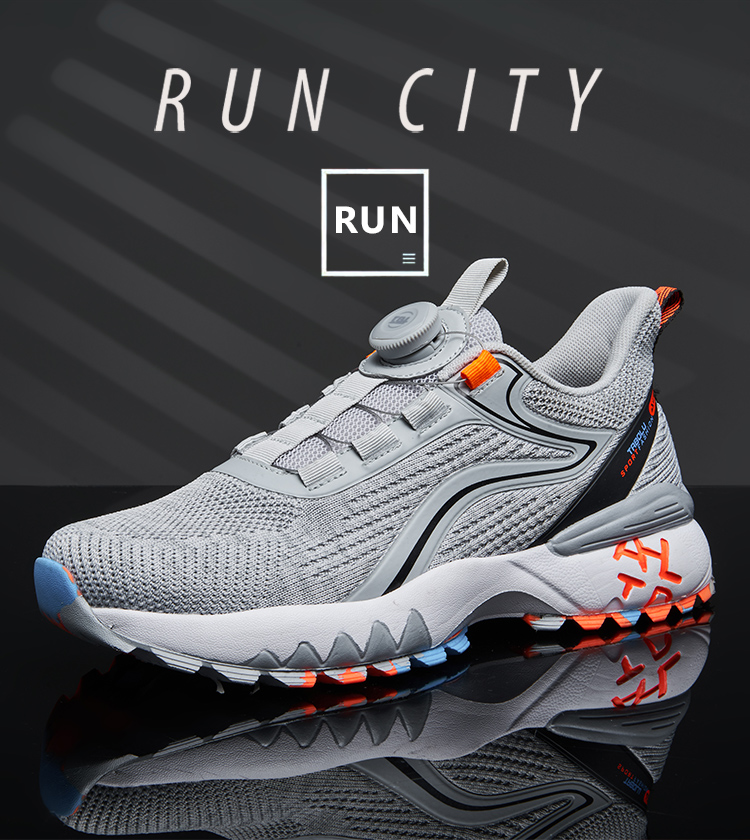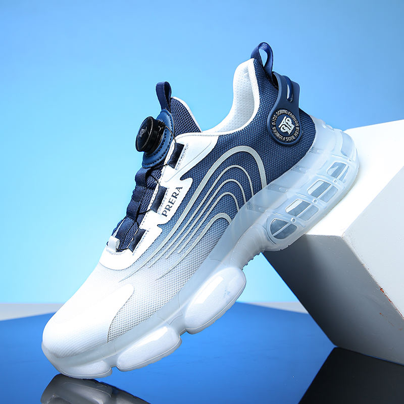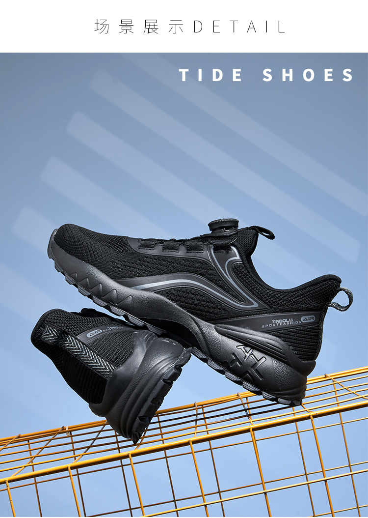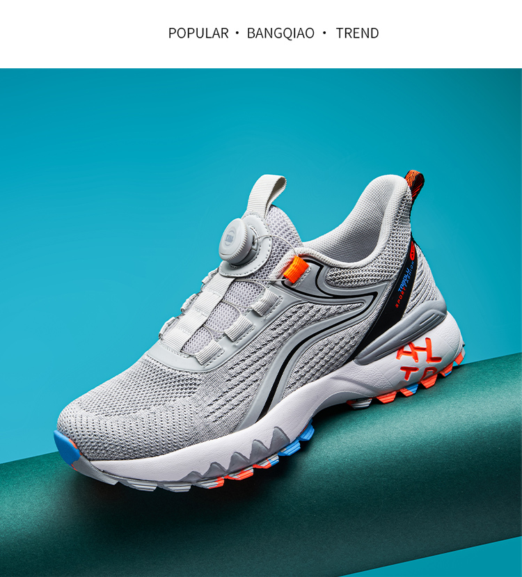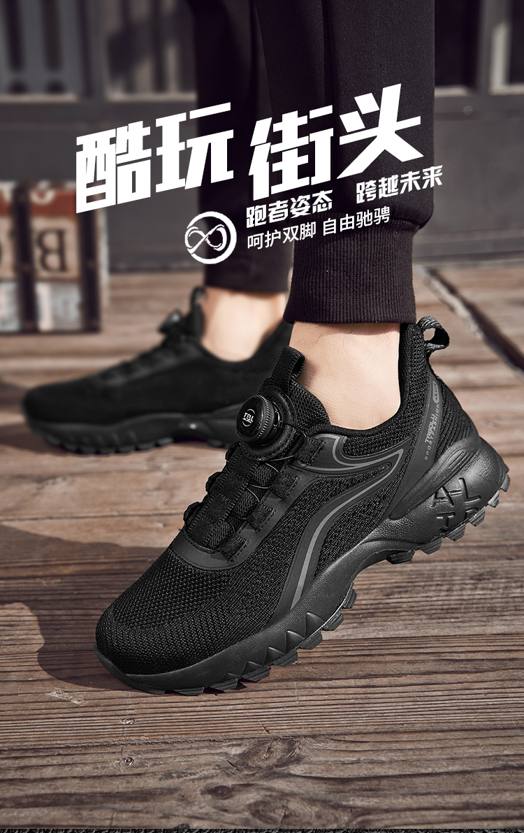 新款旋轉扣免系鞋帶透氣網面跑步鞋男體育生中考專用鞋休閒運動鞋