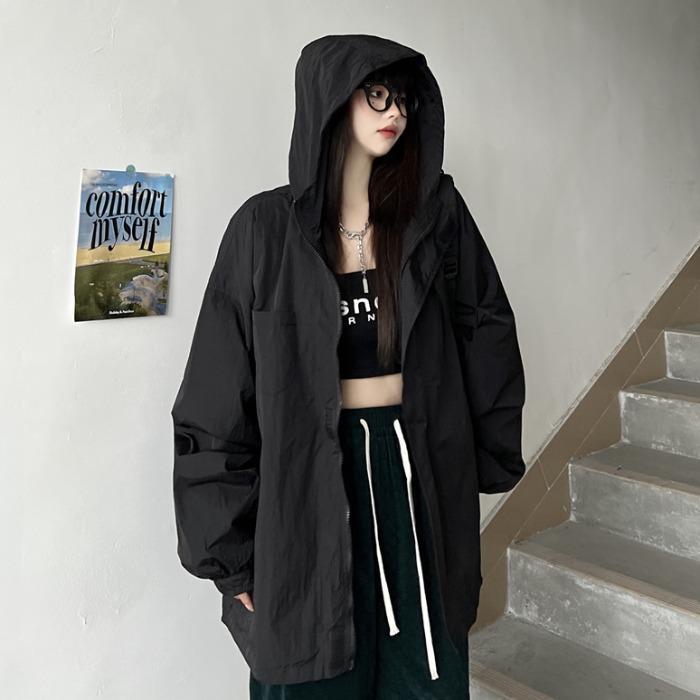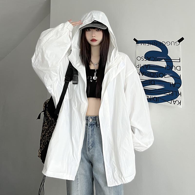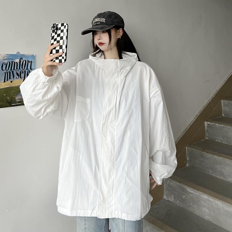 大尺碼300斤長袖防曬衣男女裝夏季百搭防曬服寬鬆開衫連帽薄款外套2