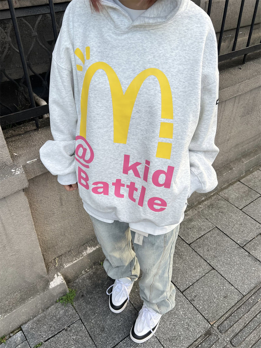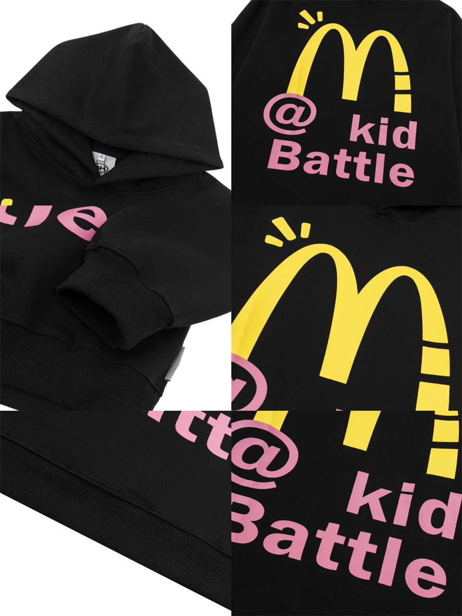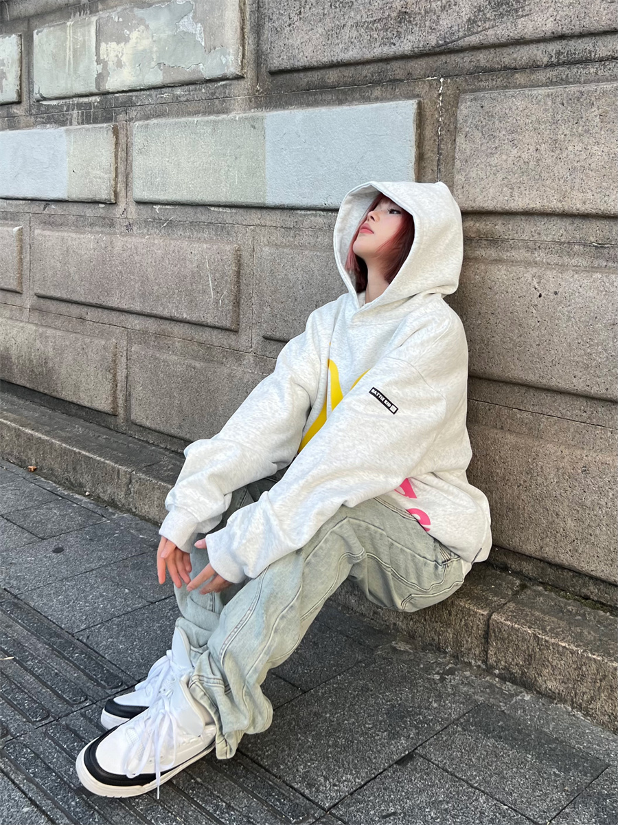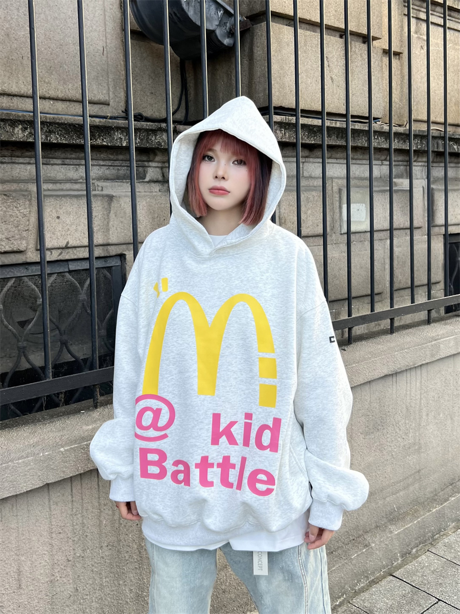 JU403 國潮美式趣味字母印花連帽運動衫秋季寬鬆休閒套頭帽衫男女潮