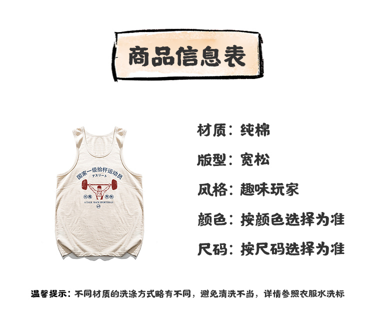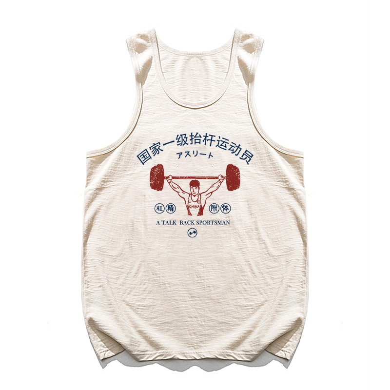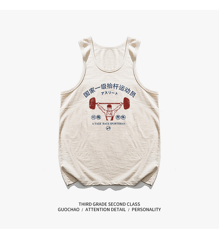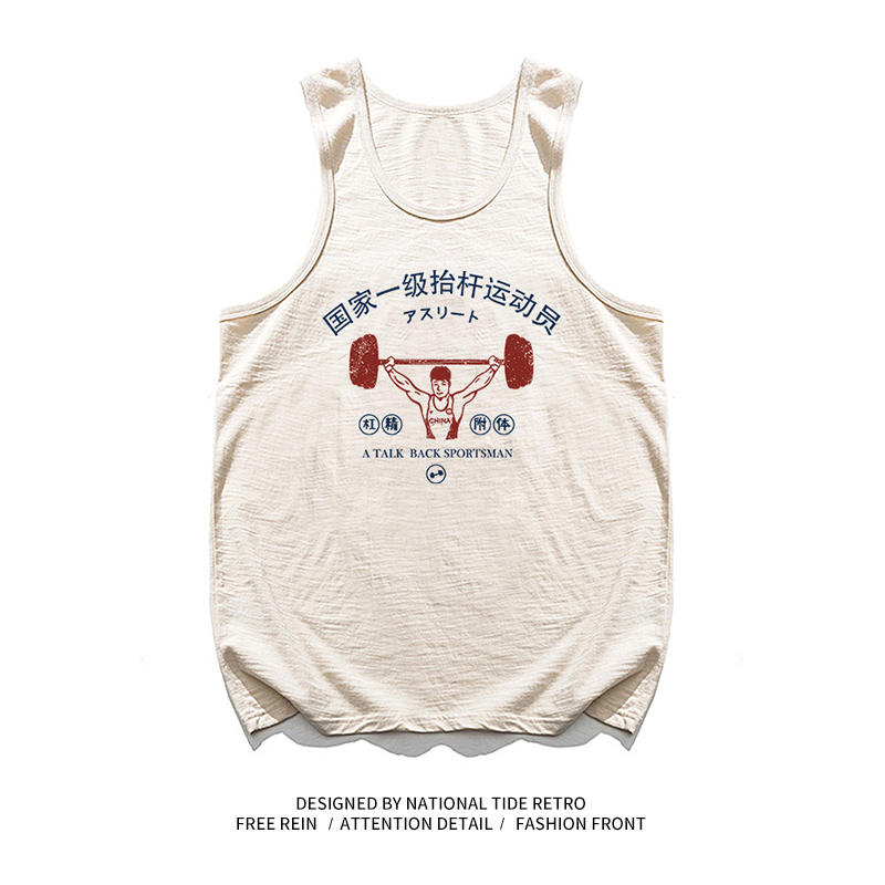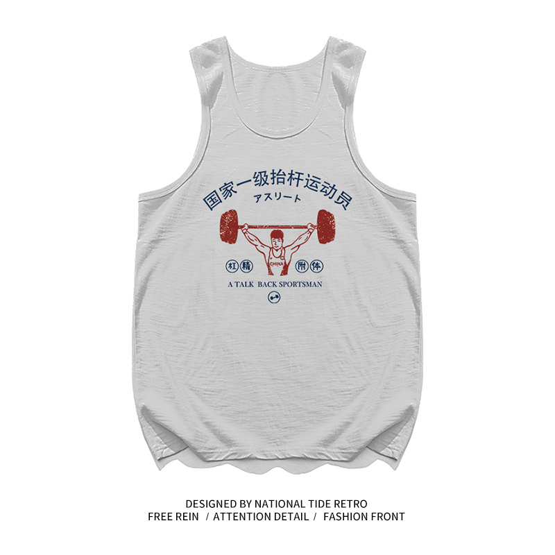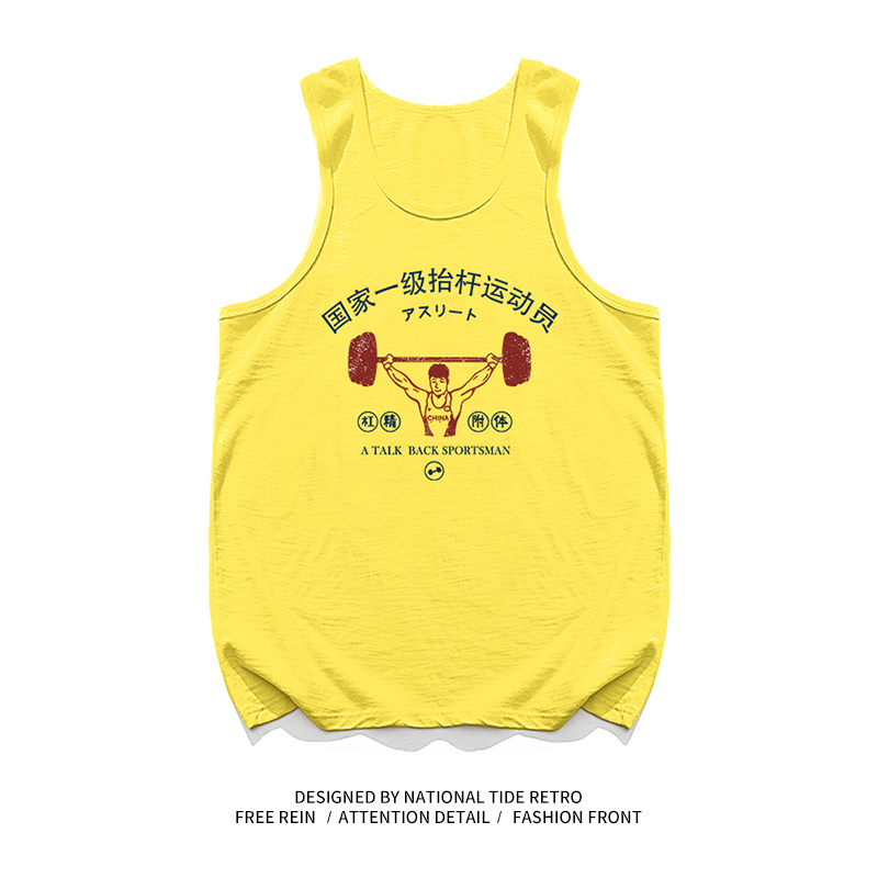 國潮復古國家一級擡槓運動員無袖寬鬆休閒創意搞笑純棉健身背心男