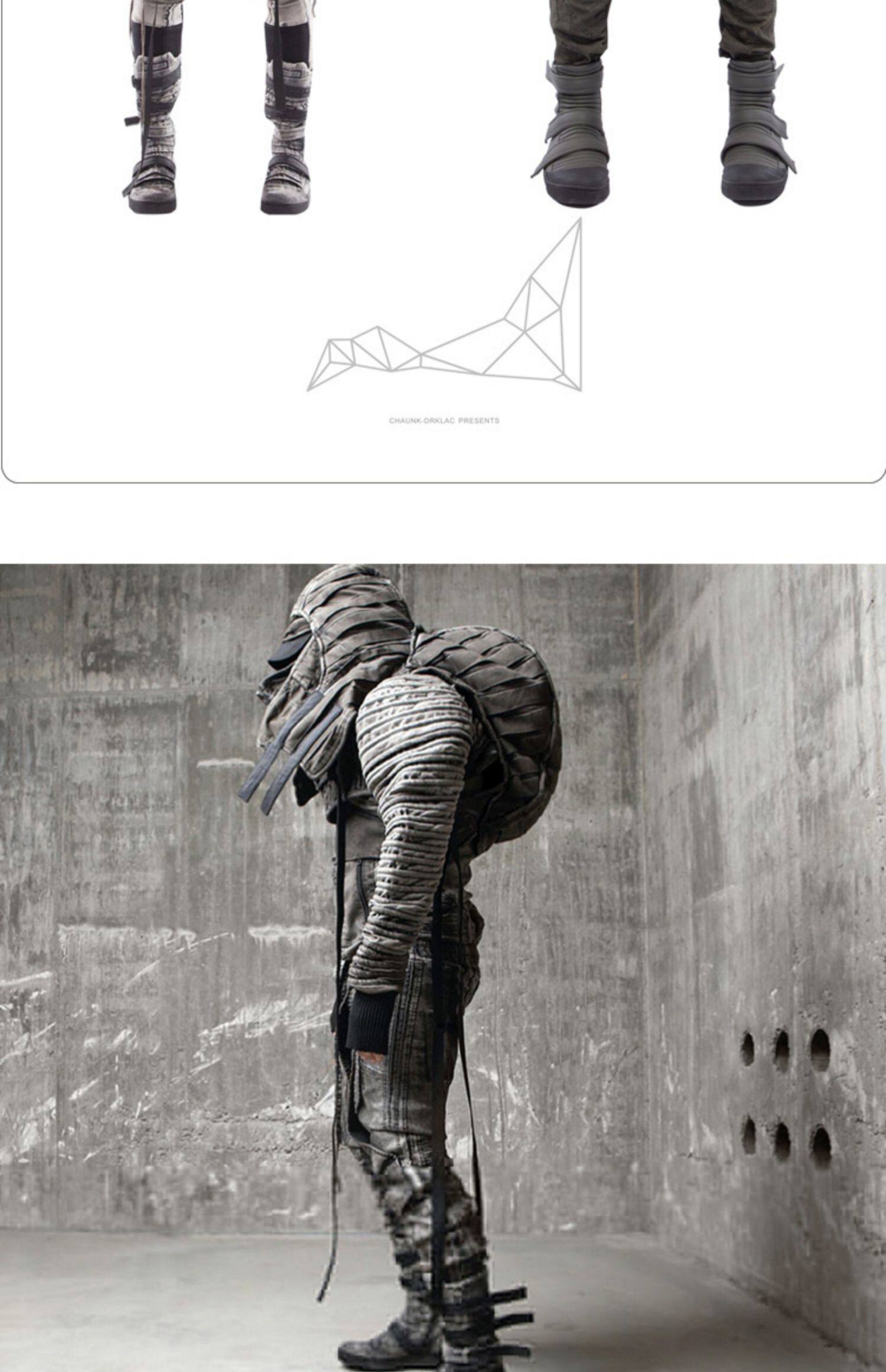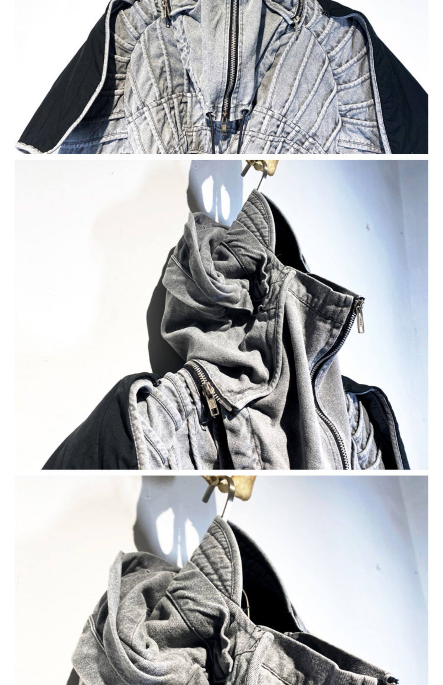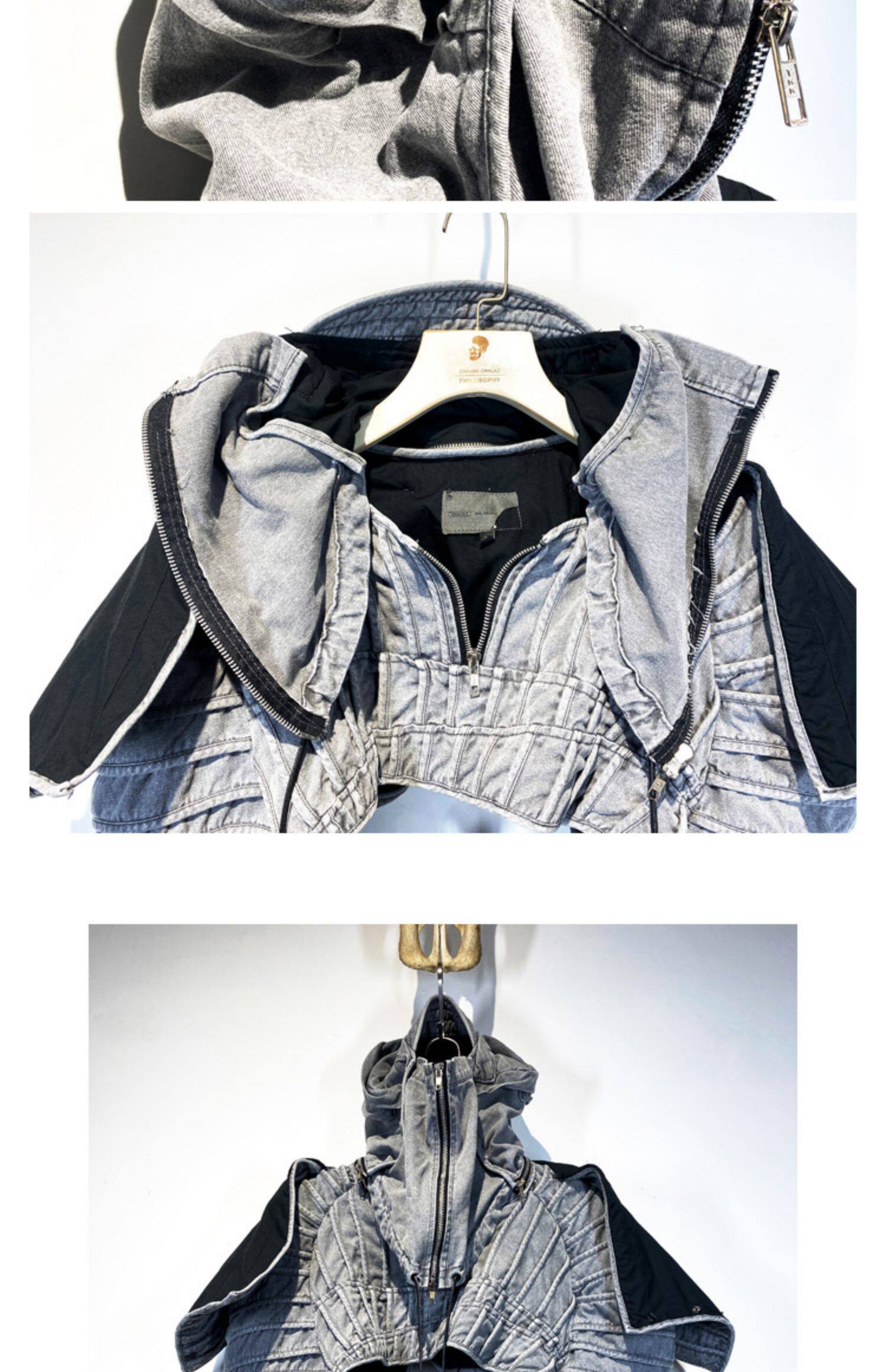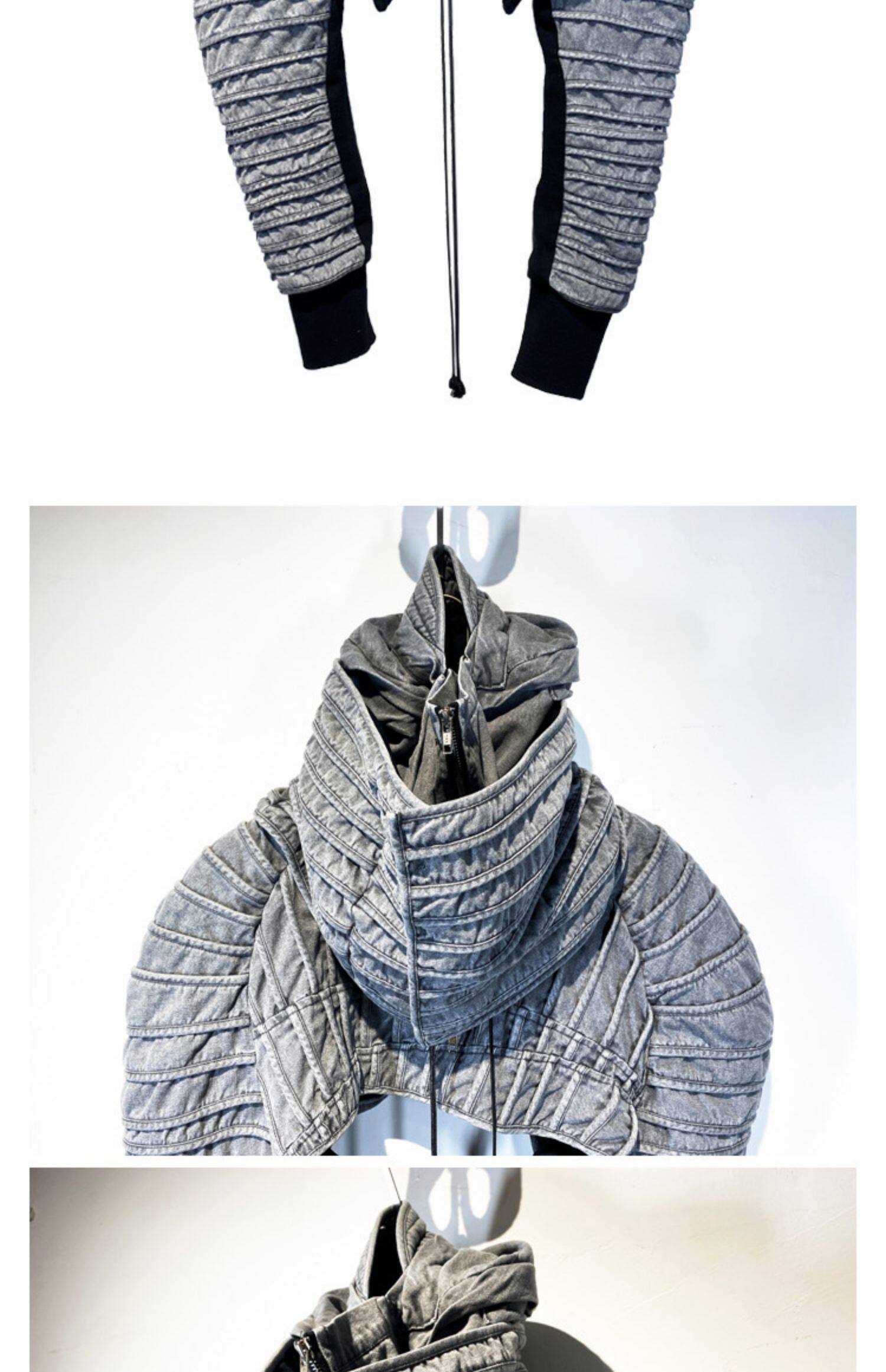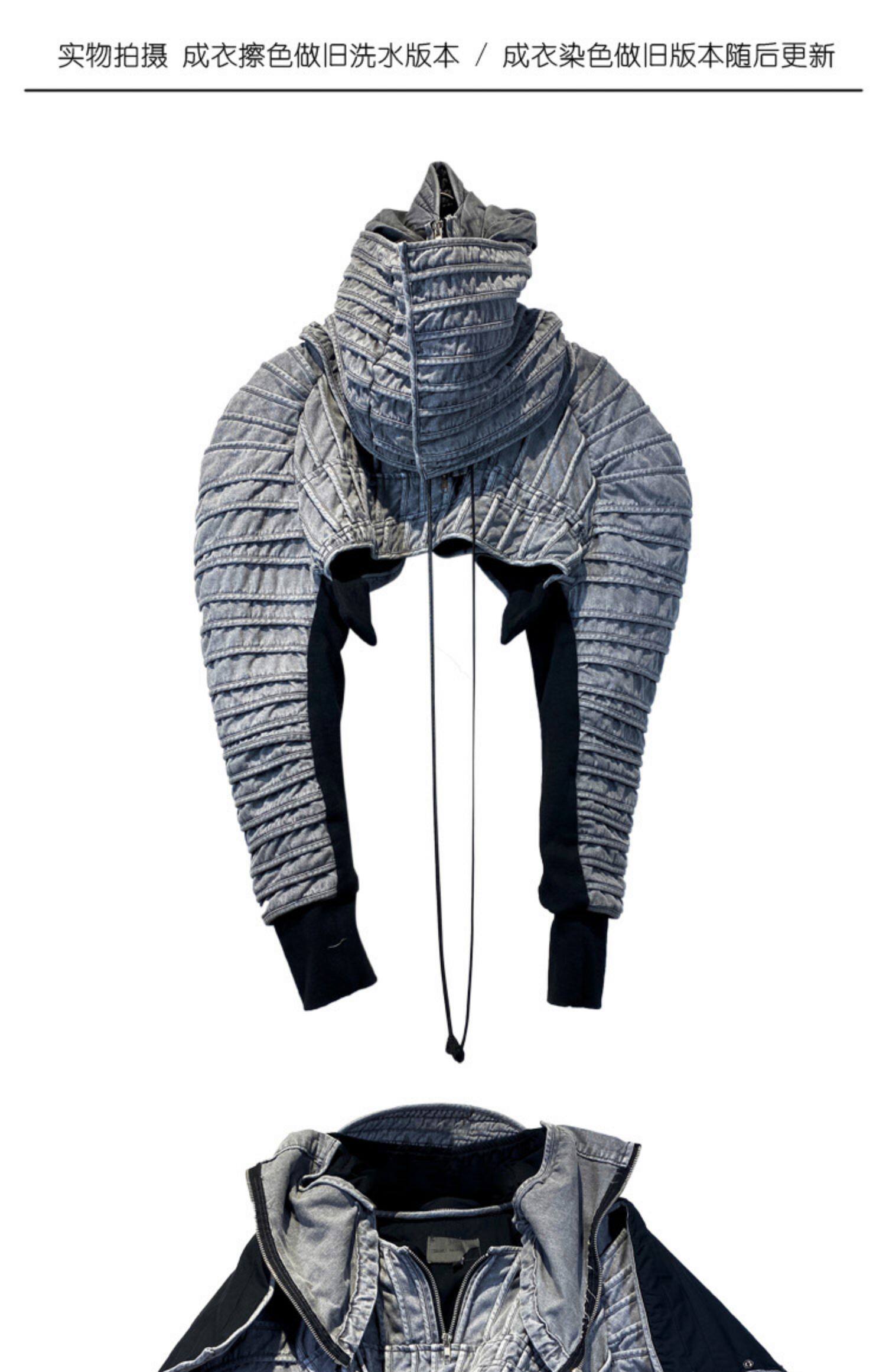 CHAUNK自主先鋒廢土沙丘DEMO褶襉復古做舊層次廓形立領短夾克男潮