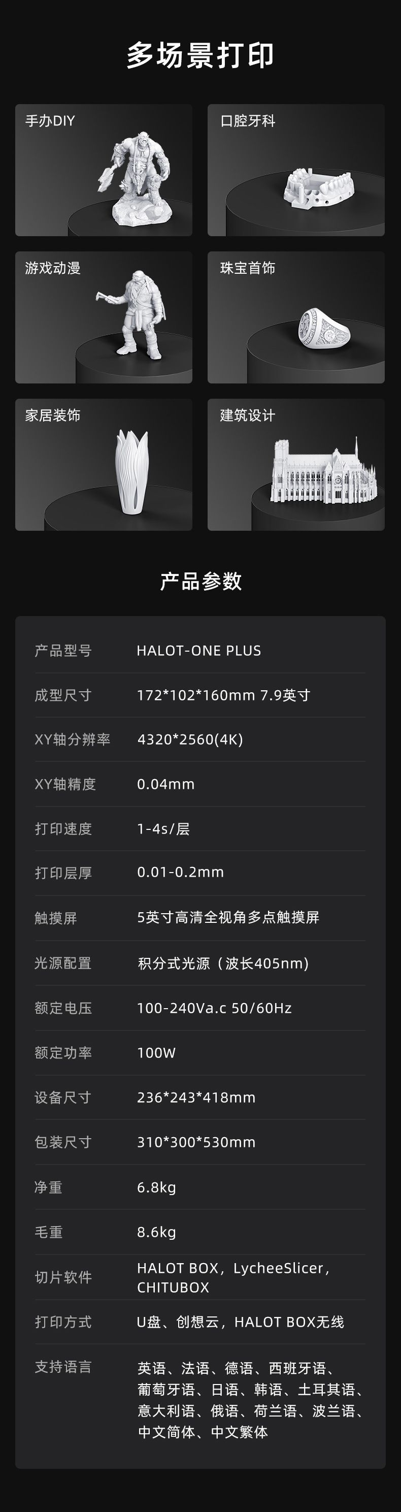 适用场景 工业 设计 diy 教育 牙模 珠宝 手办