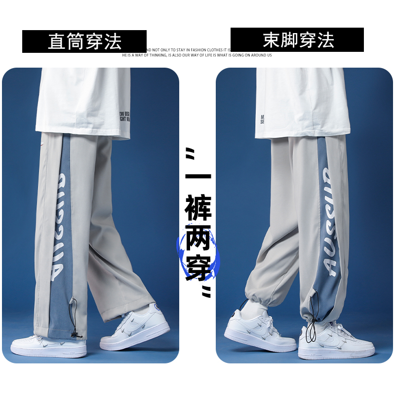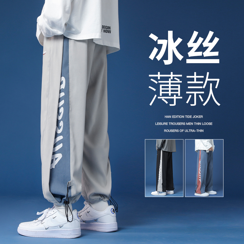 冰絲褲子男生夏季薄款2023新款青少年運動休閒長褲春秋男士工裝褲