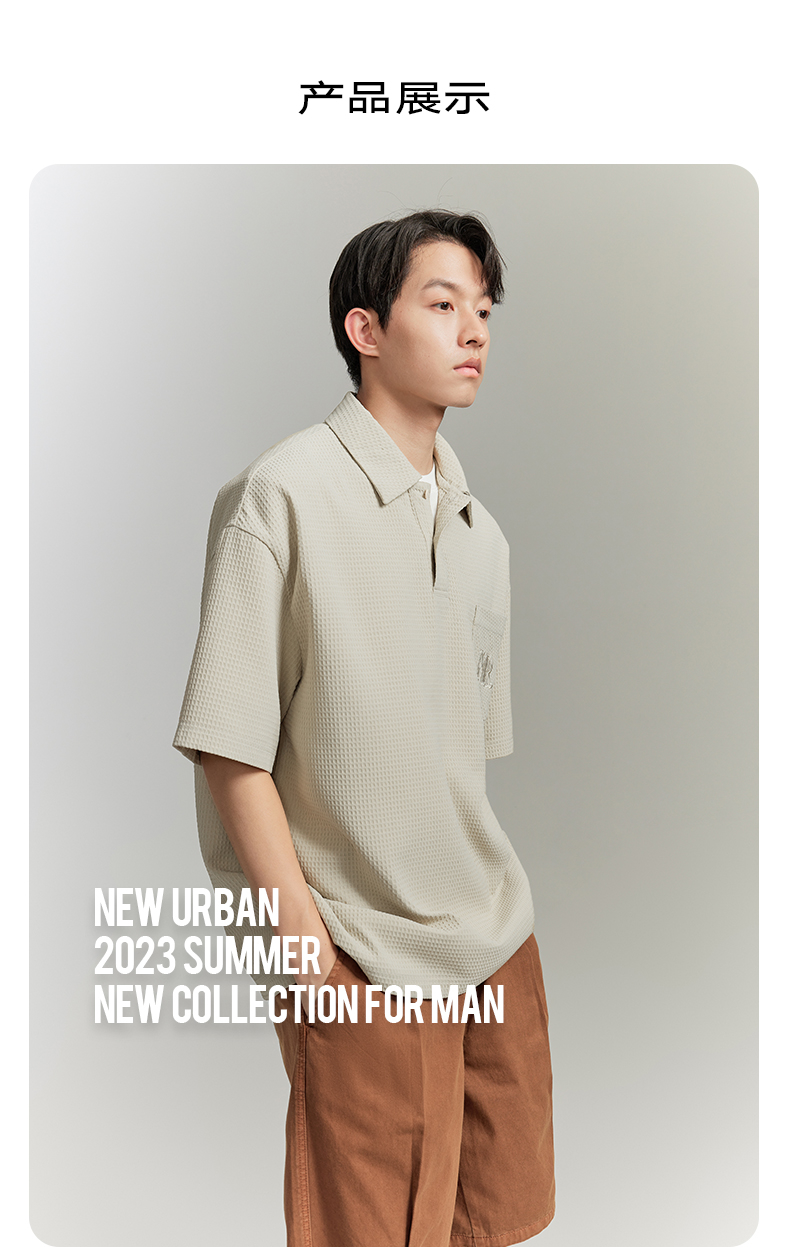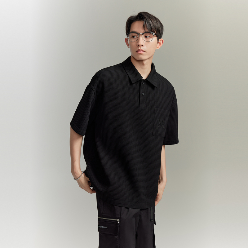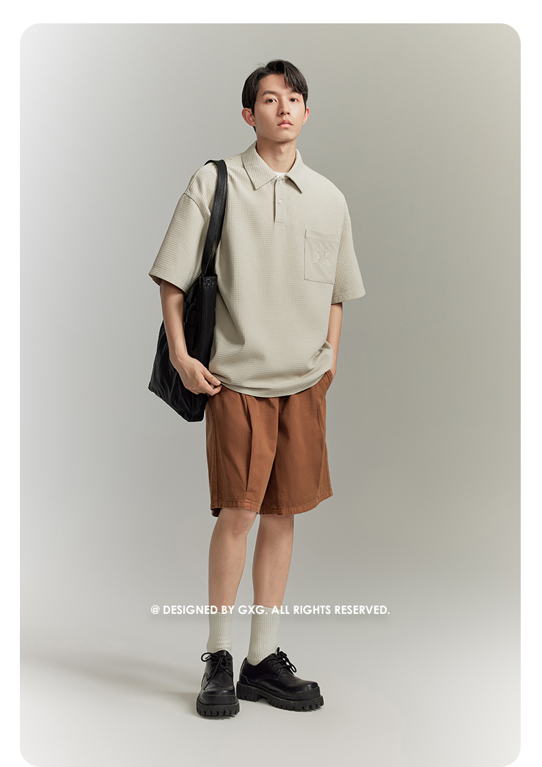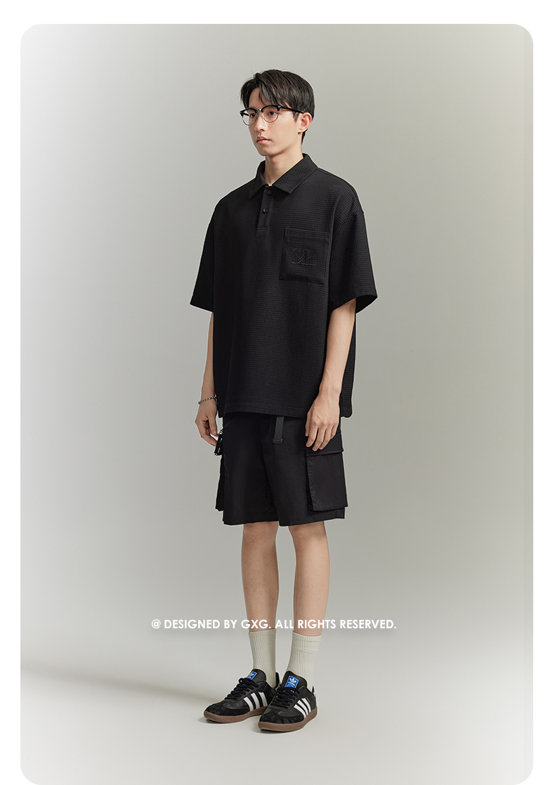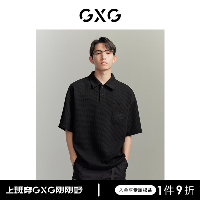 【龔俊心選】GXG男裝 多色華夫格面料休閒寬鬆polo衫男 夏季新品
