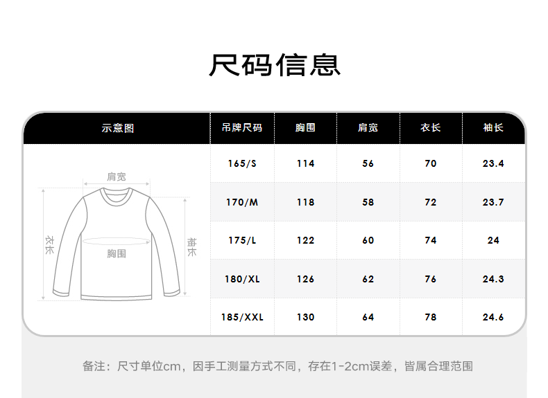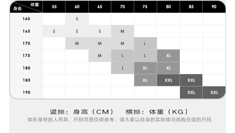尺碼 165/S 170/M 175/L 180/XL 185/XXL
