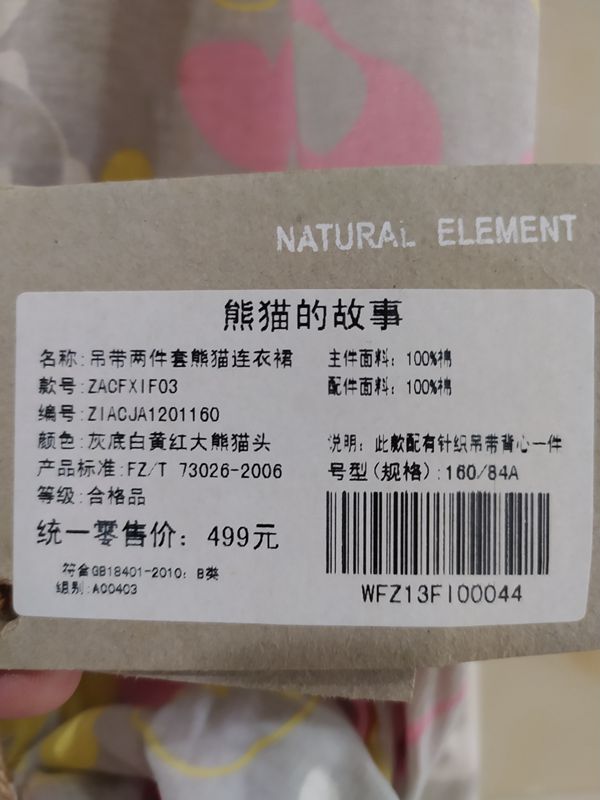 清倉特價自然元素專櫃正品 印花熊貓吊帶洋裝需自配打底裙XIF03