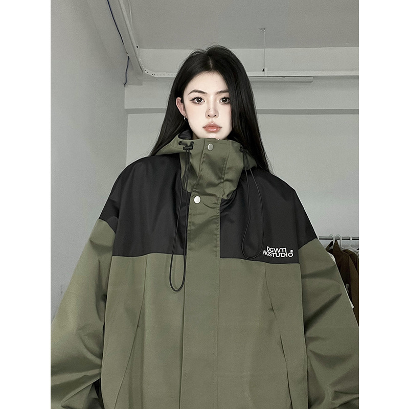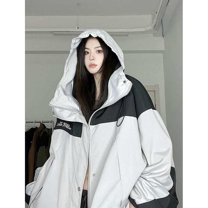 胖mm300斤超大尺碼連帽衝鋒衣女春季新款寬鬆工裝夾克拉鍊外套上衣