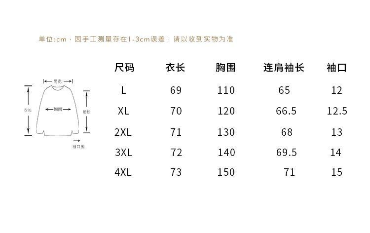 尺碼 L XL 2XL 3XL 4XL