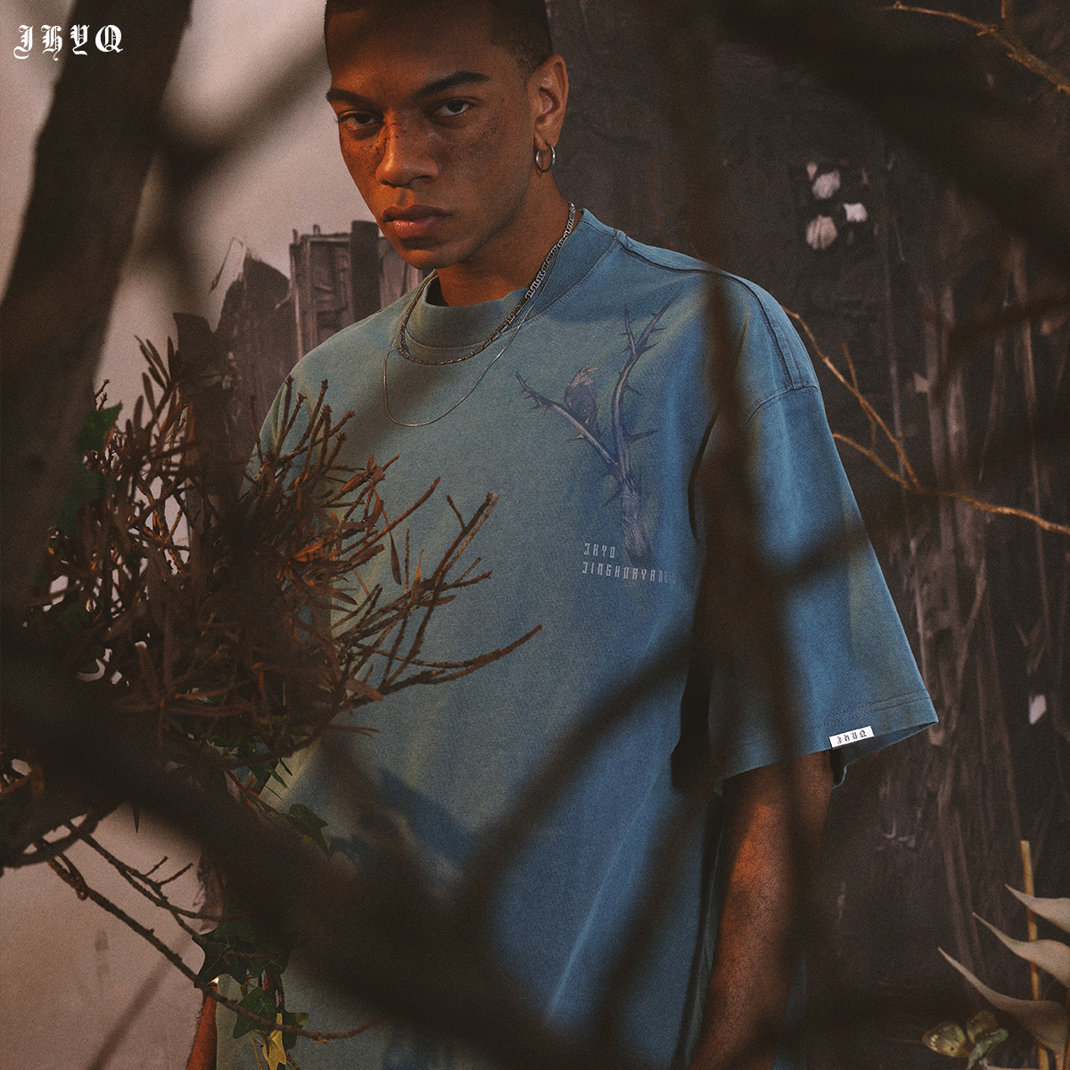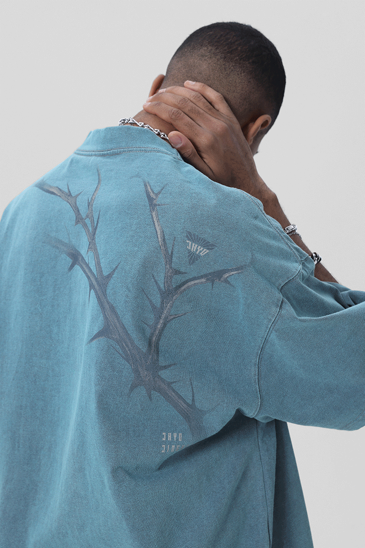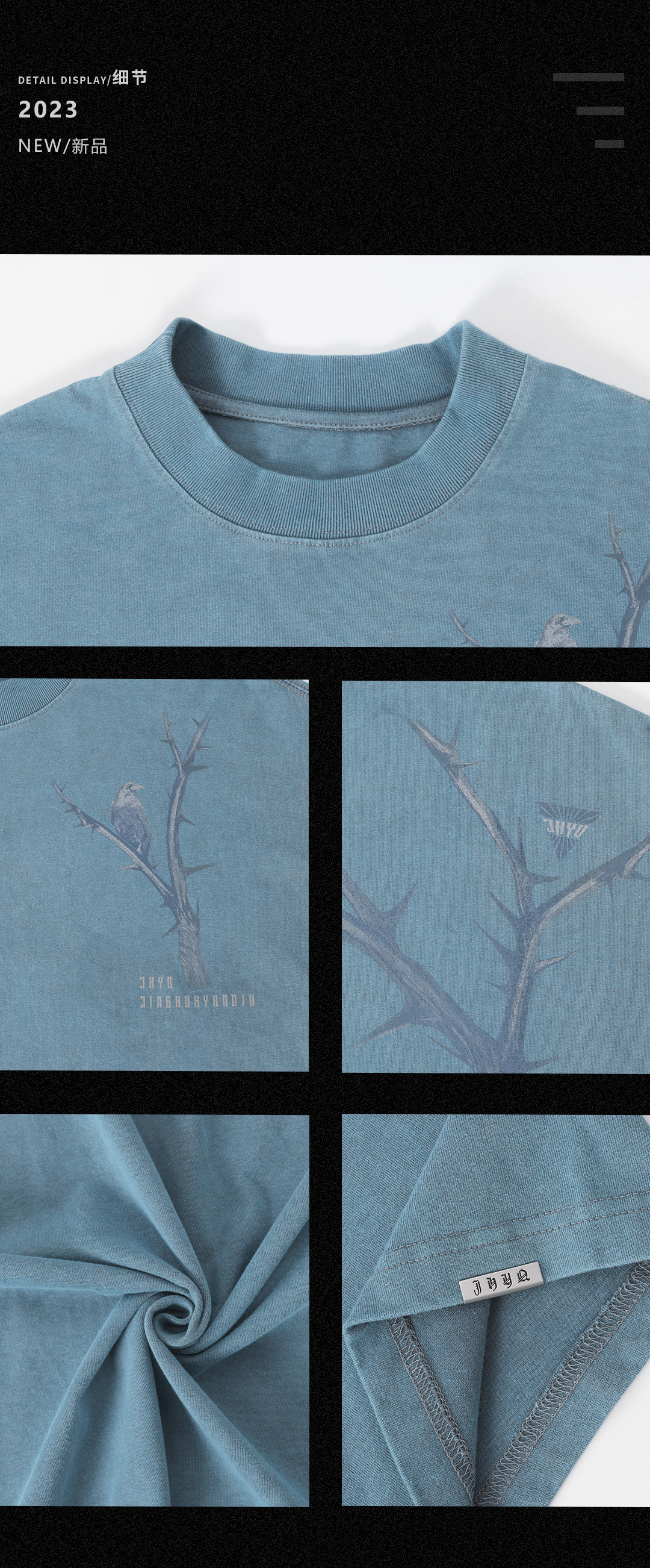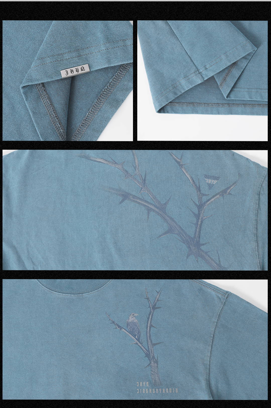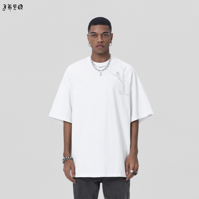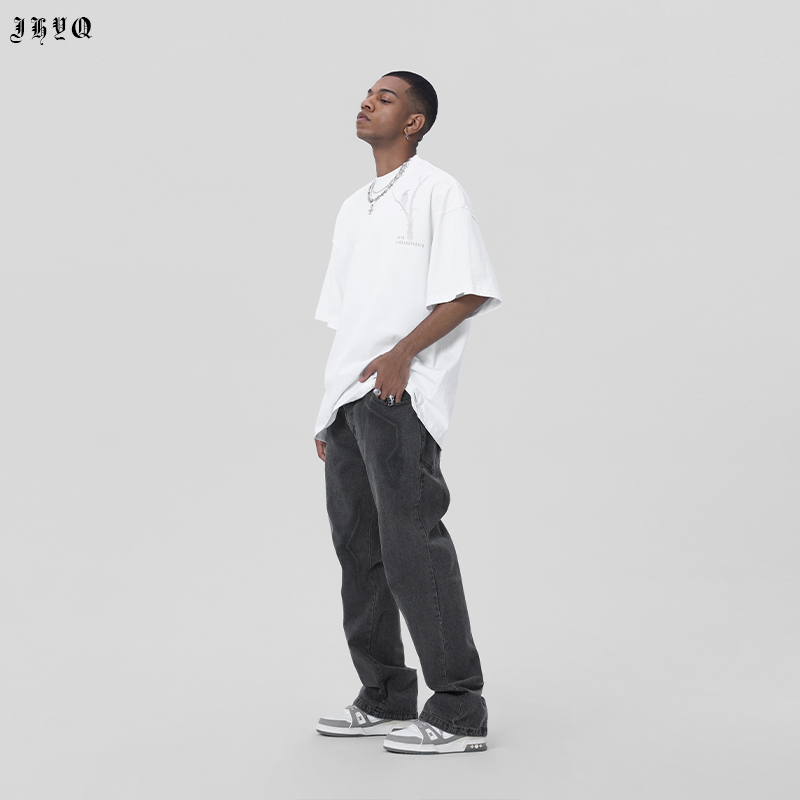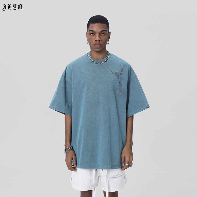 JHYQ荊棘系列 美式潮牌休閒寬鬆T恤男圓領純棉運動水洗短袖