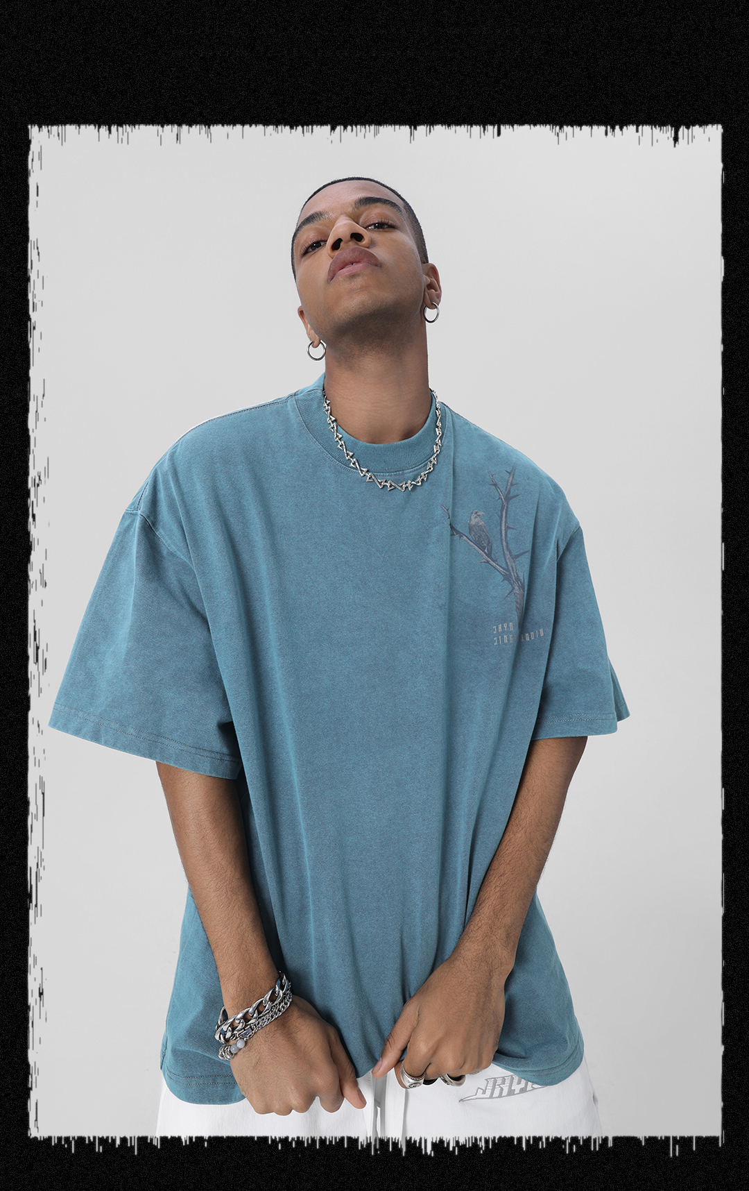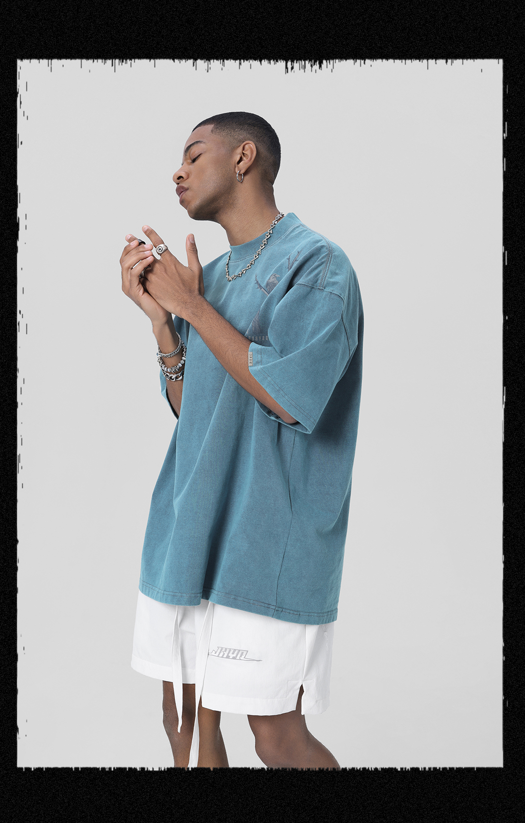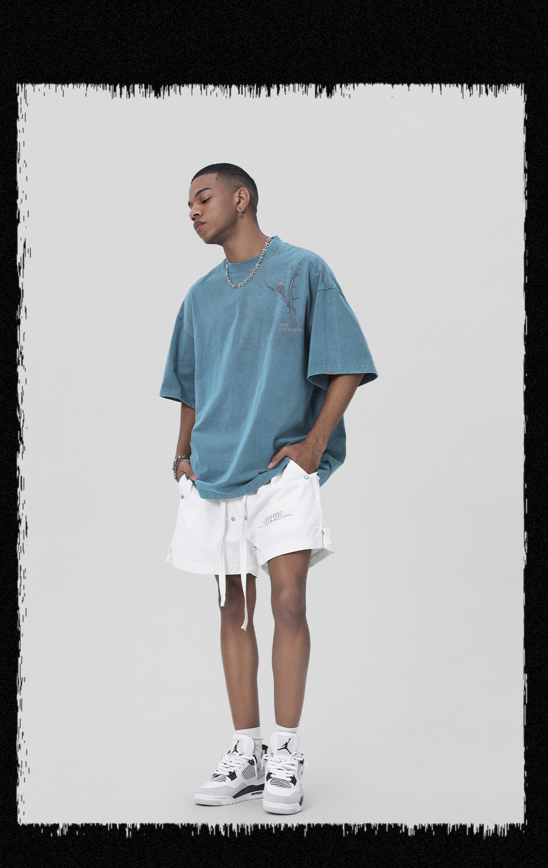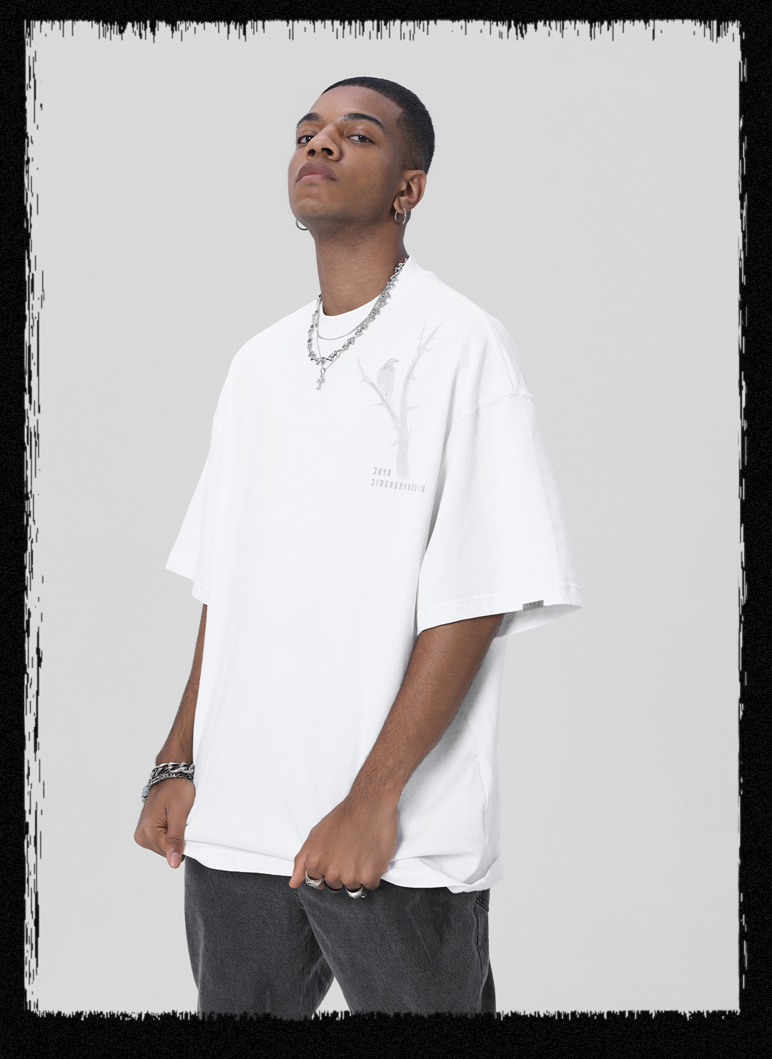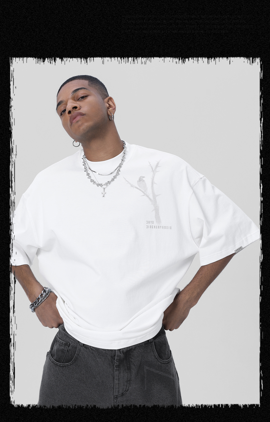 JHYQ荊棘系列 美式潮牌休閒寬鬆T恤男圓領純棉運動水洗短袖