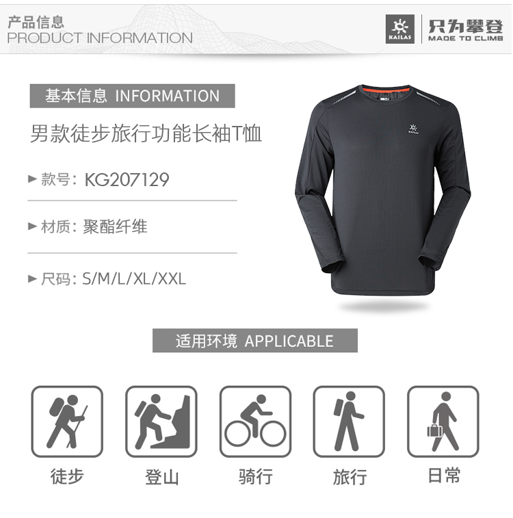 20春夏新凱樂石男款長袖速乾T恤徒步旅行跑步戶外運動透氣KG07129