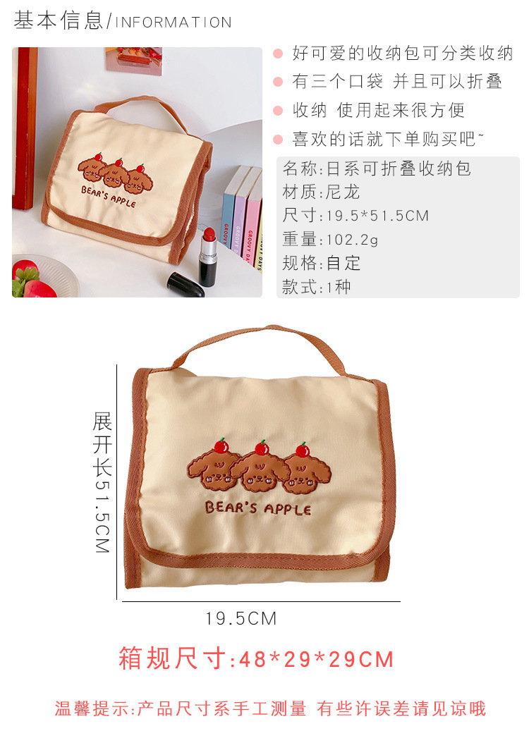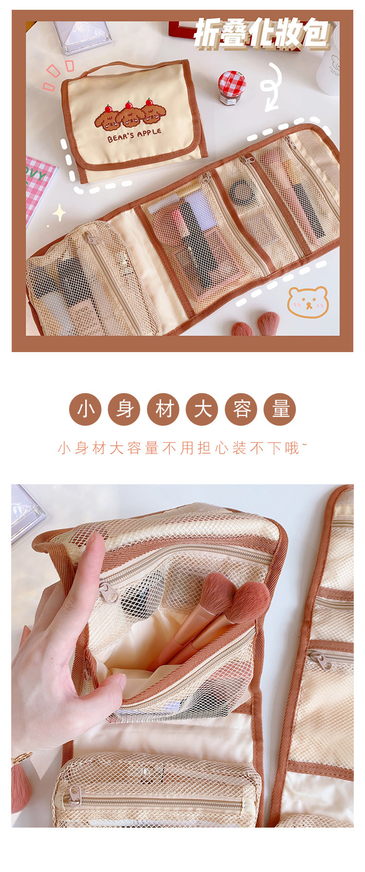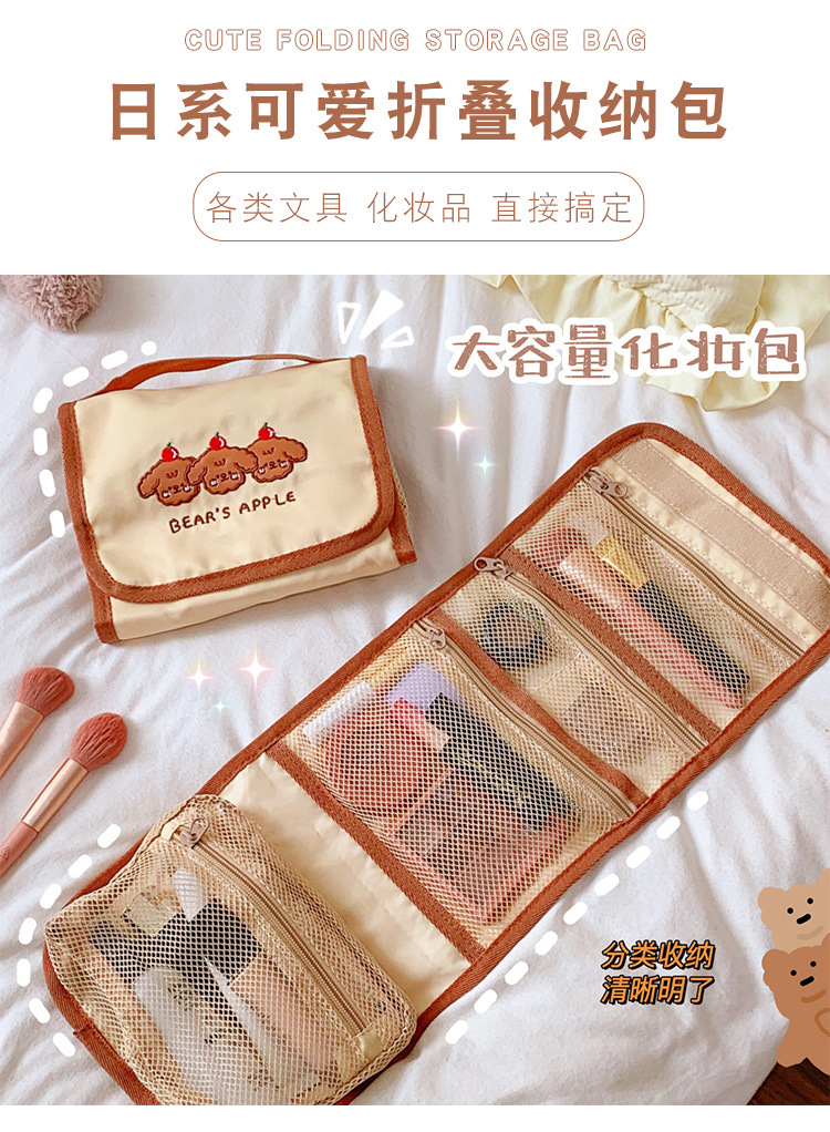 日系可爱折叠收纳包新款简约多折小熊化妆包ins风便携旅行收纳袋