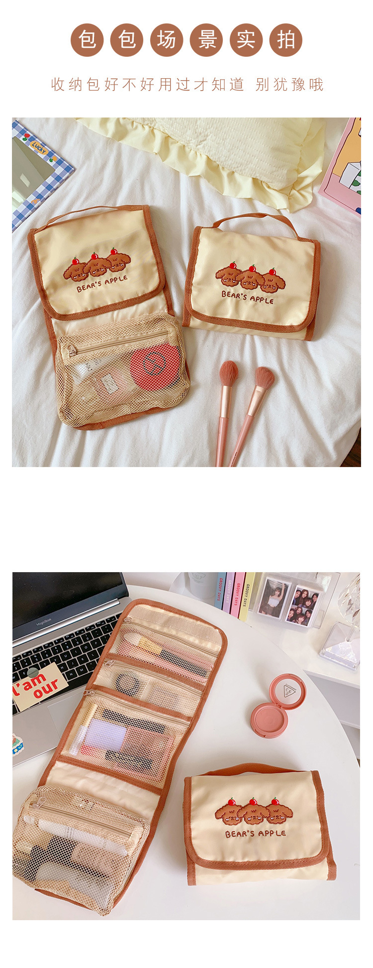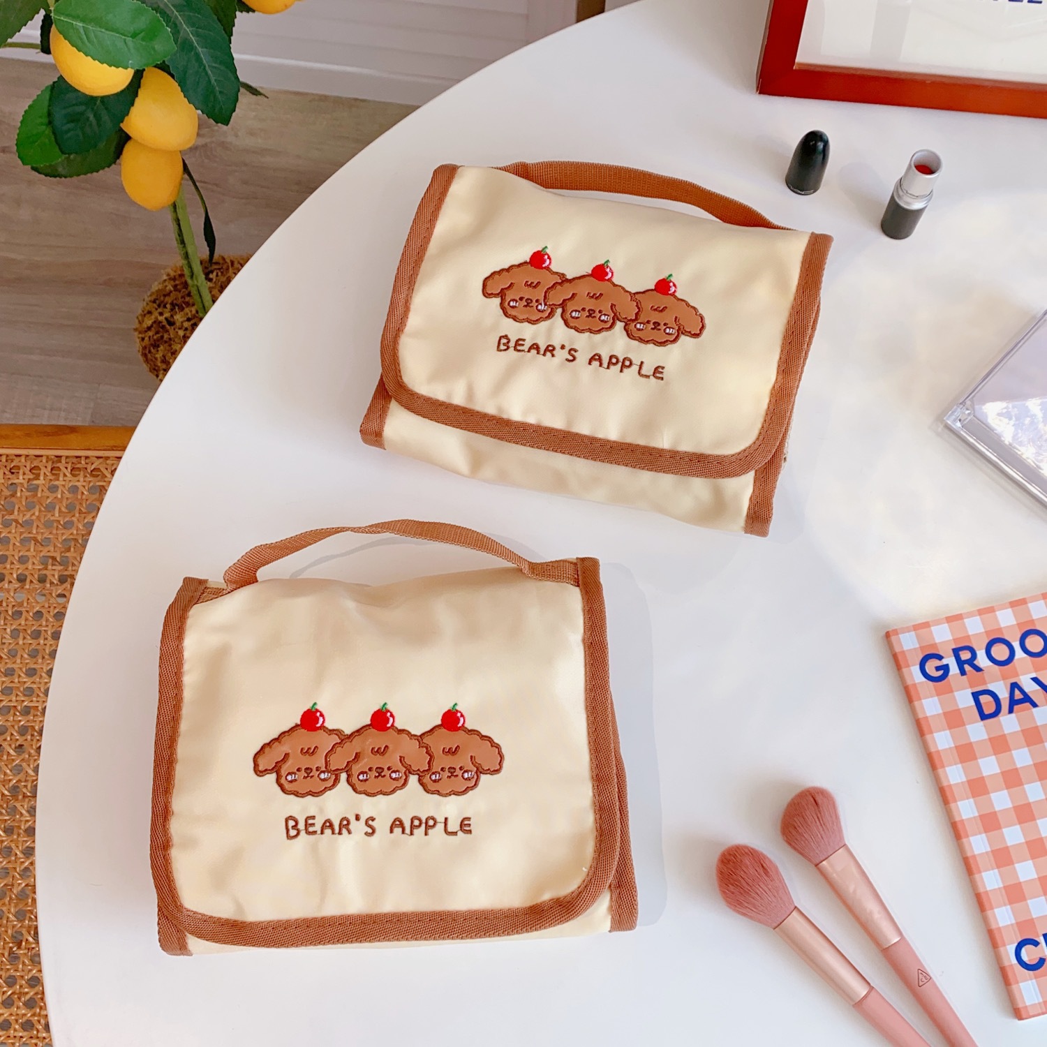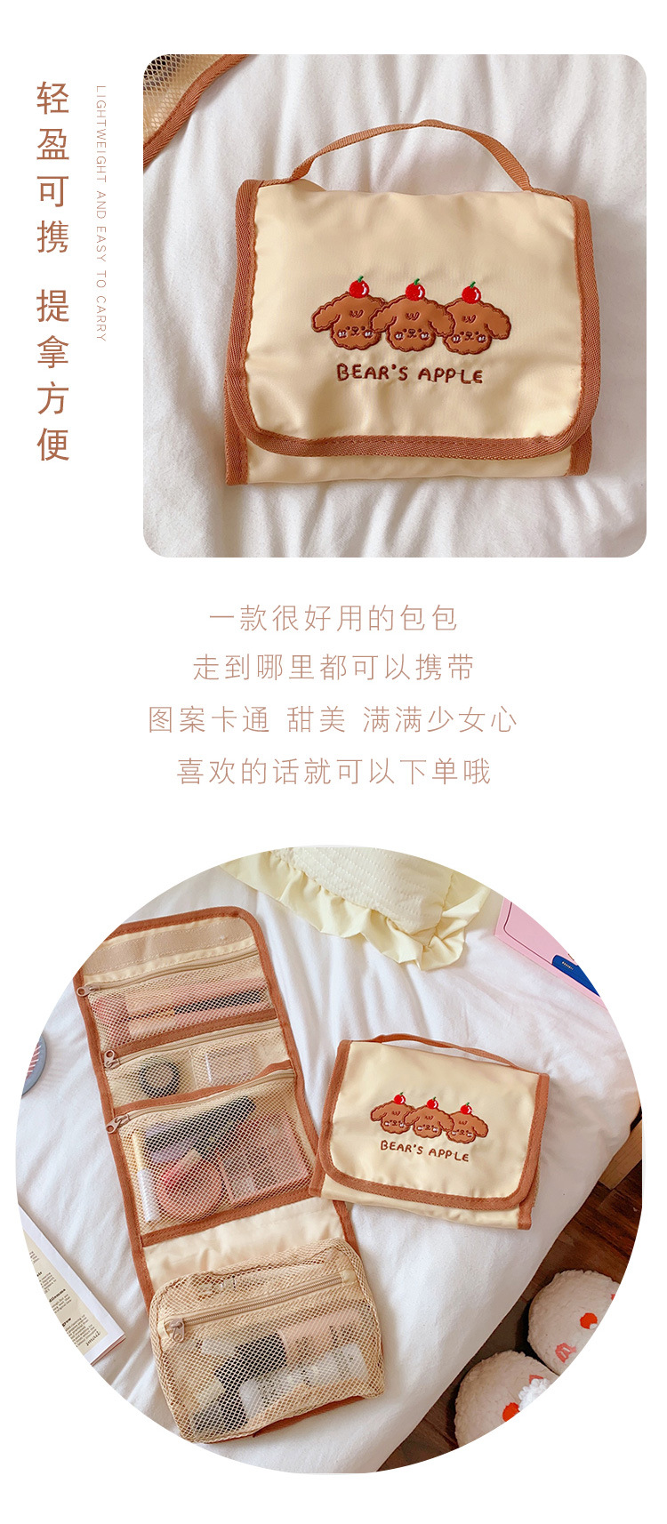 日系可爱折叠收纳包新款简约多折小熊化妆包ins风便携旅行收纳袋