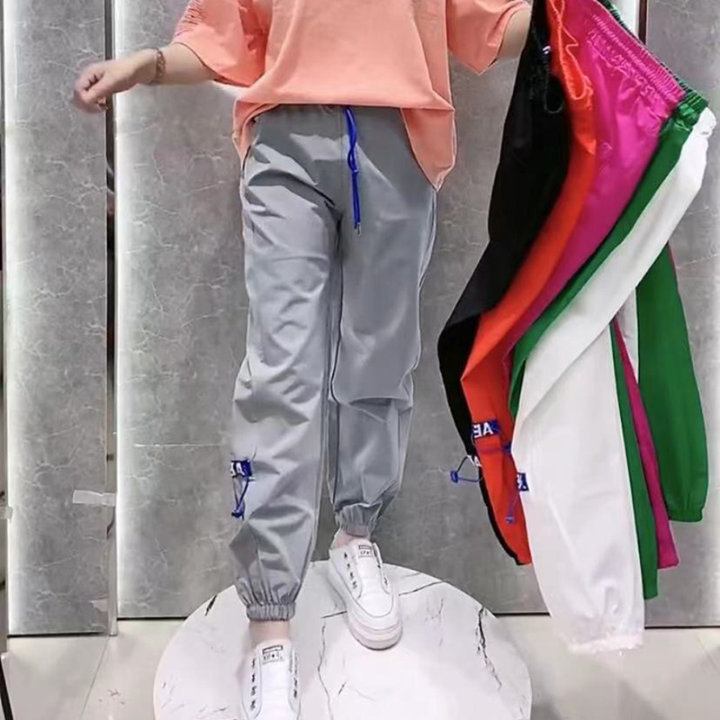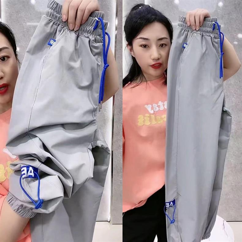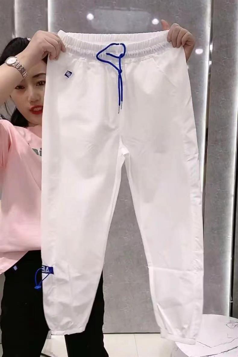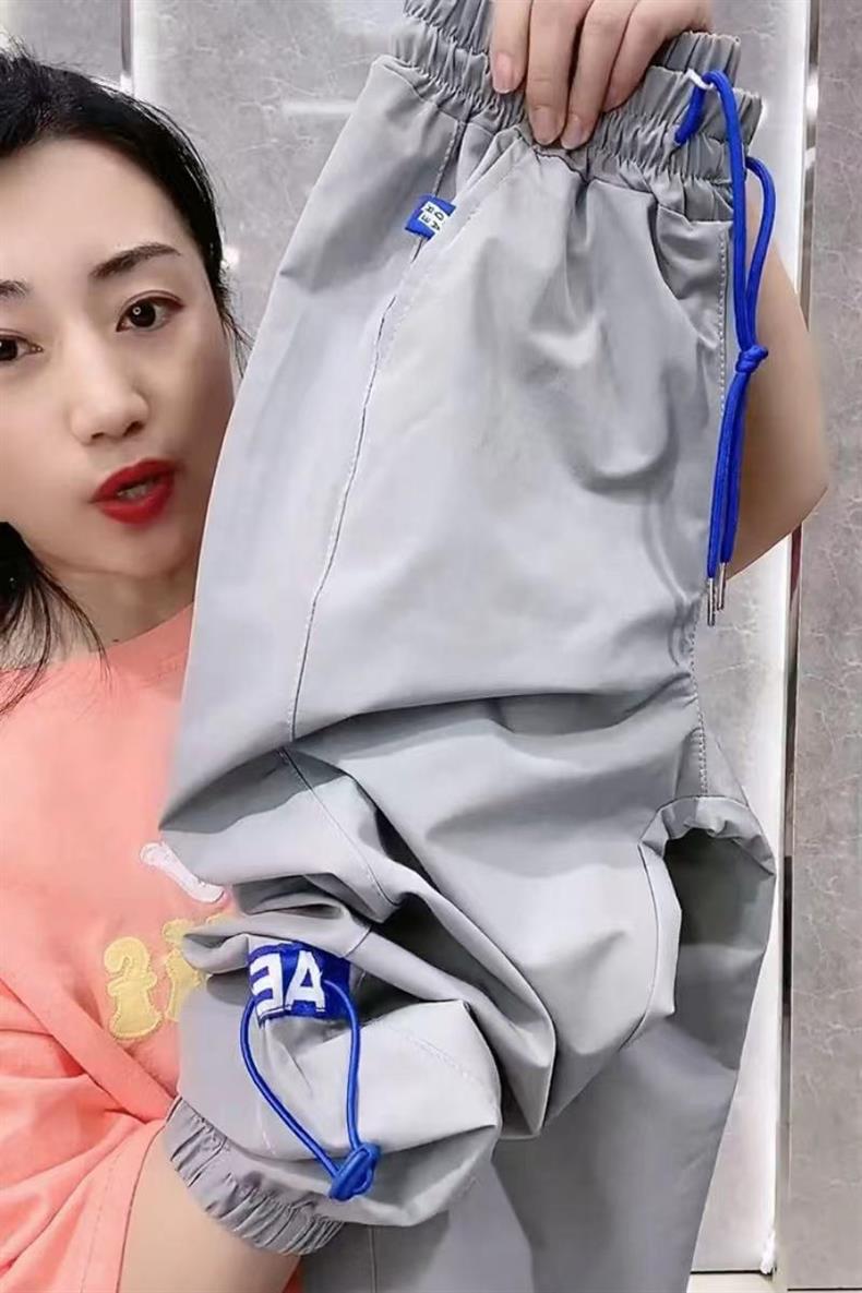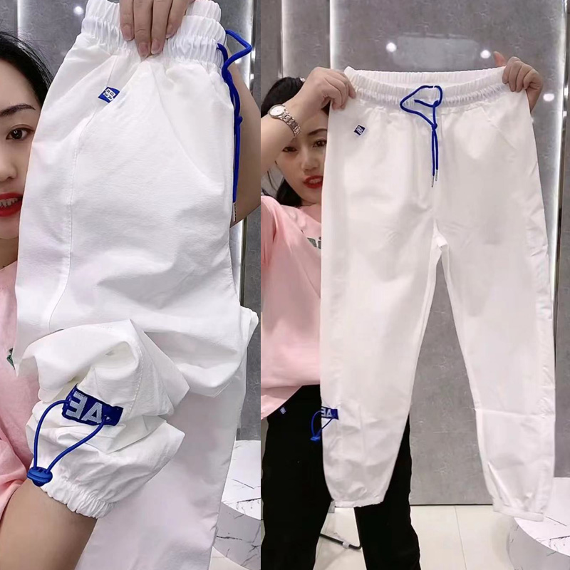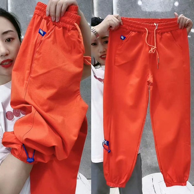 大尺碼300斤2023夏季薄款冰絲速乾運動褲束腳男胖寬鬆九分休閒褲