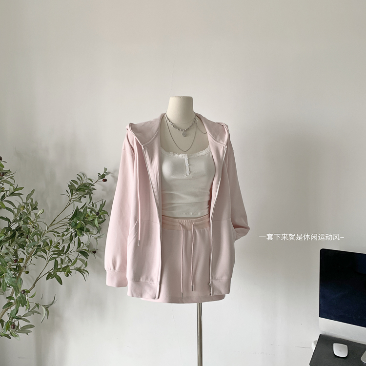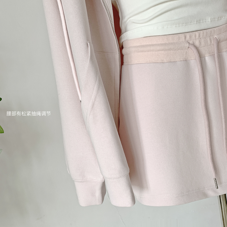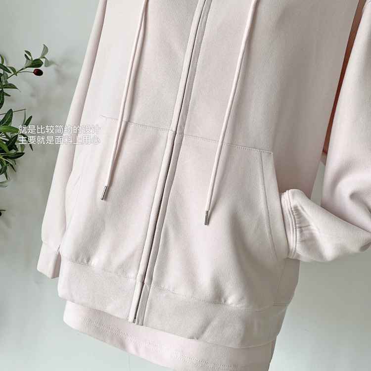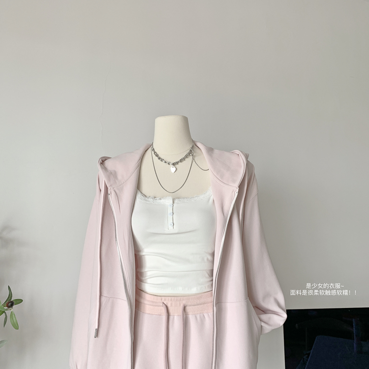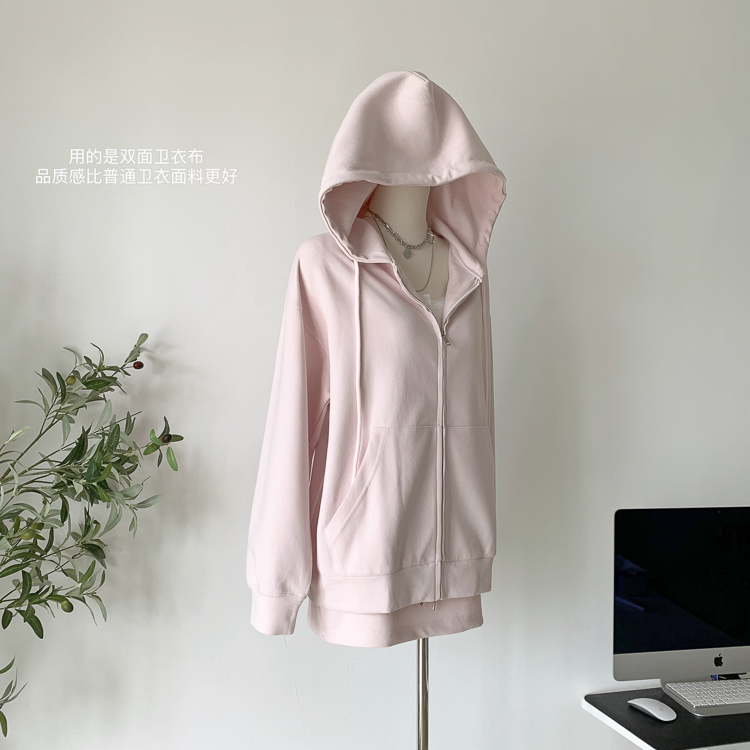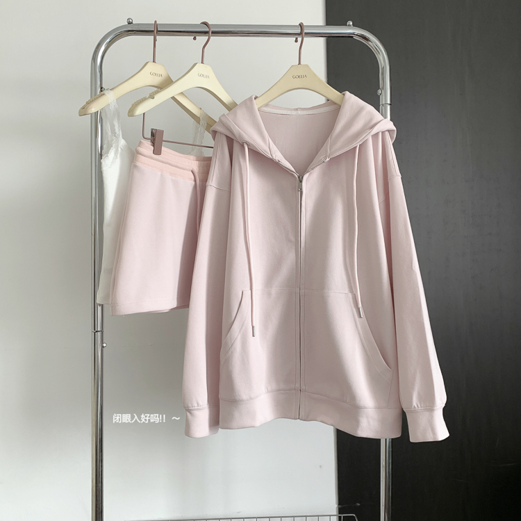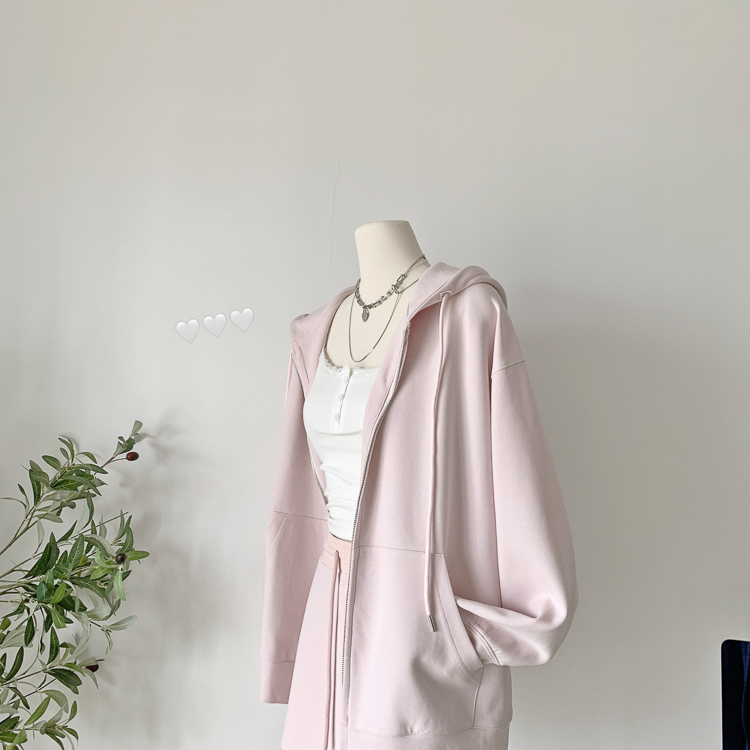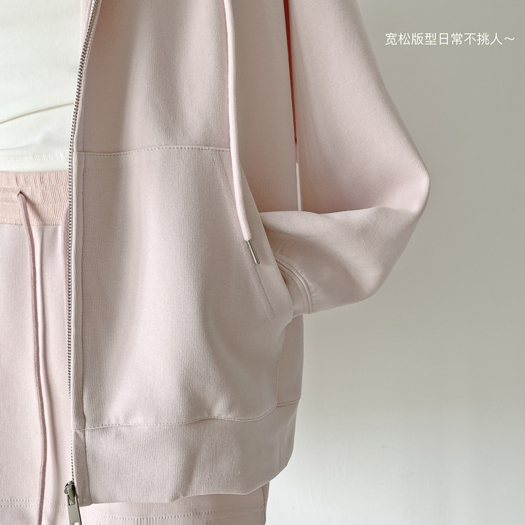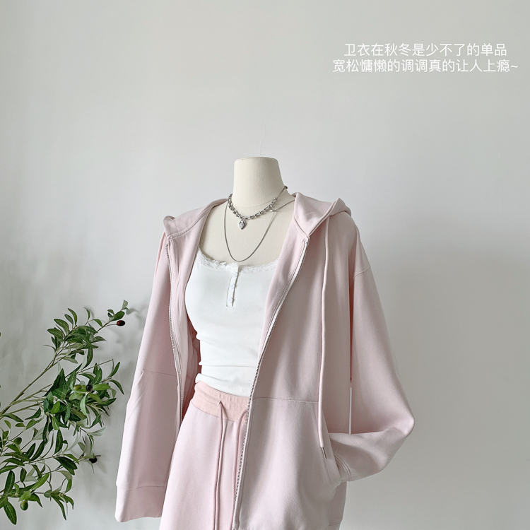 林夏夏 【粉粉蜜桃套裝~】連帽運動衫外套女初秋新款慵懶風粉色上衣