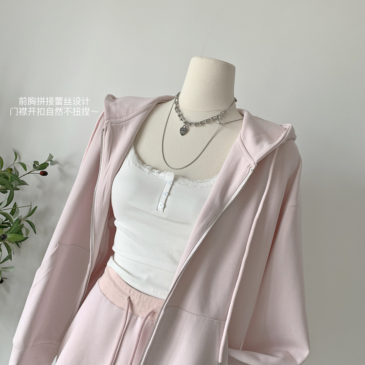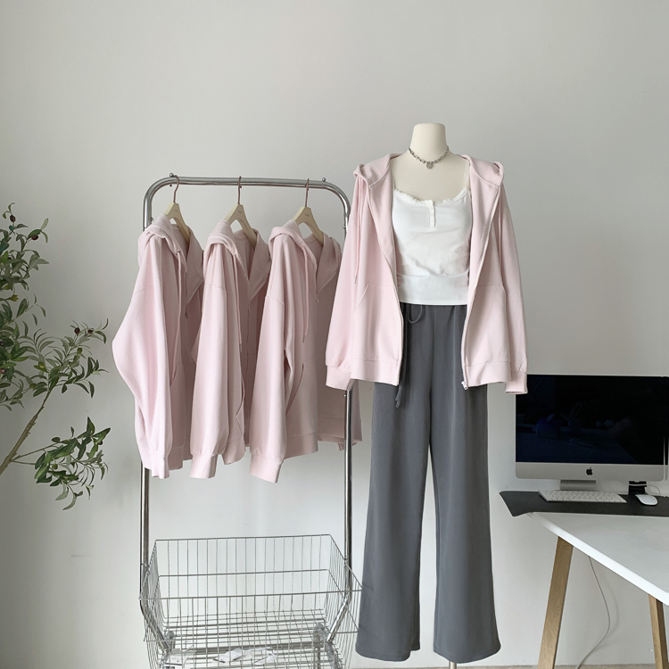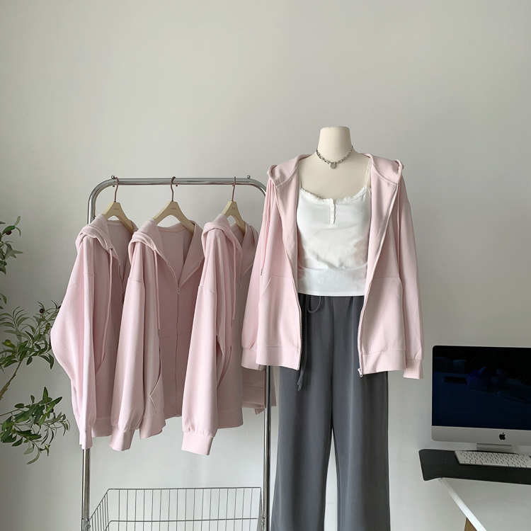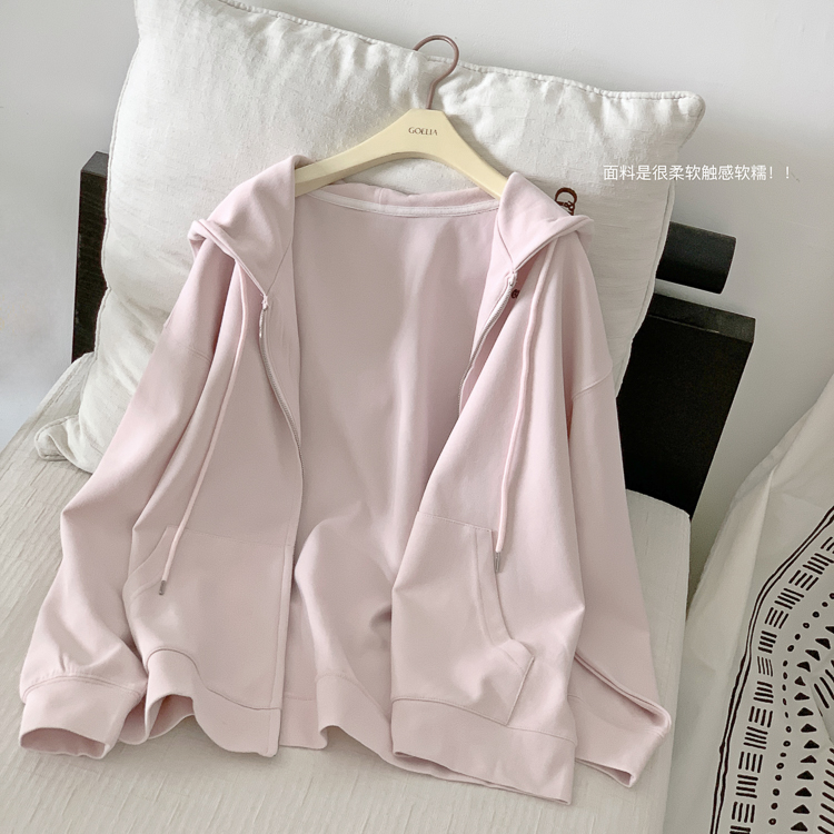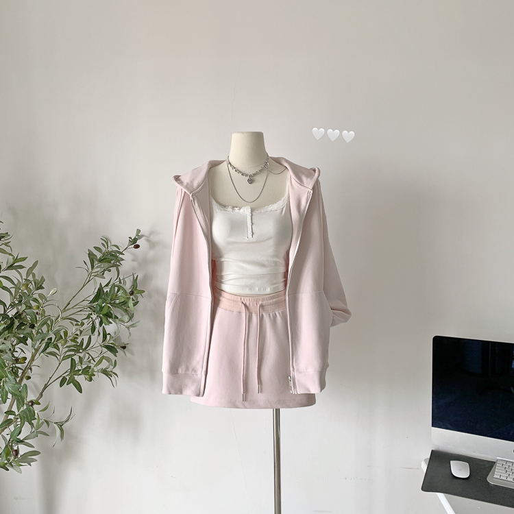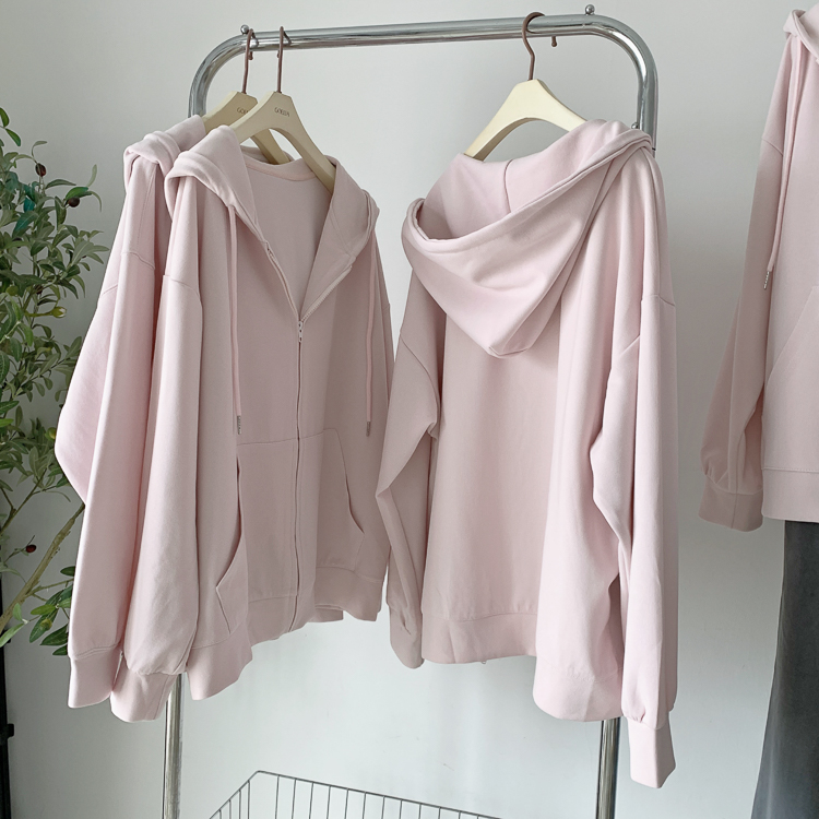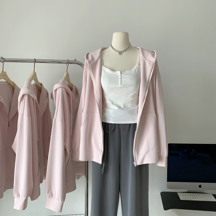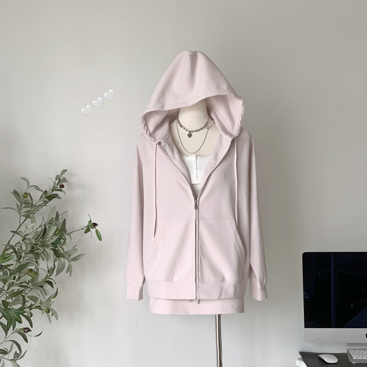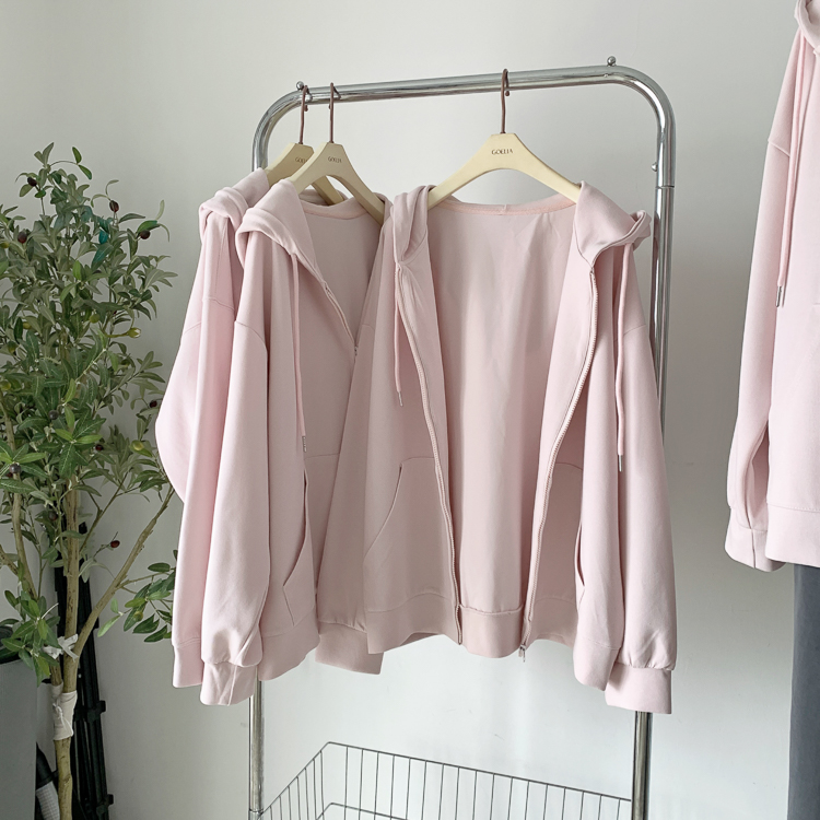 林夏夏 【粉粉蜜桃套裝~】連帽運動衫外套女初秋新款慵懶風粉色上衣