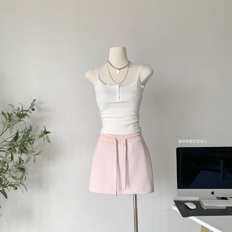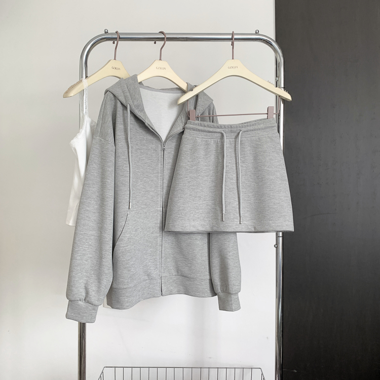顏色分類 粉色衛衣,花灰色厚棉T,粉色半身裙,花灰色半身裙,奶白色蕾絲吊帶