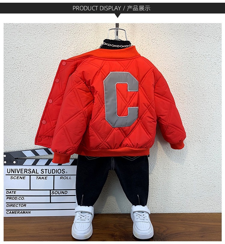 男童外套秋冬2023新款宝宝洋气加厚棉衣冬装儿童轻薄款夹棉夹克潮