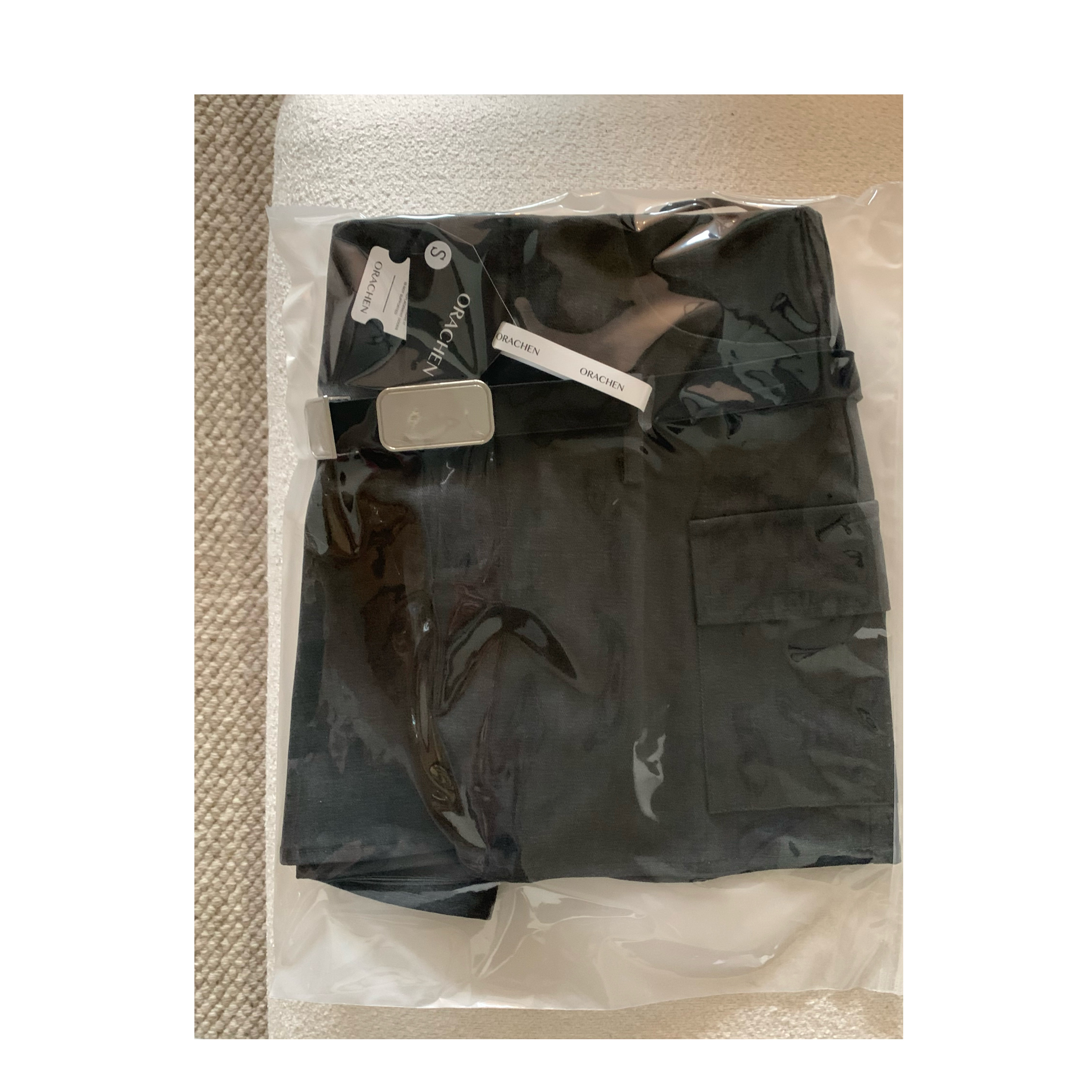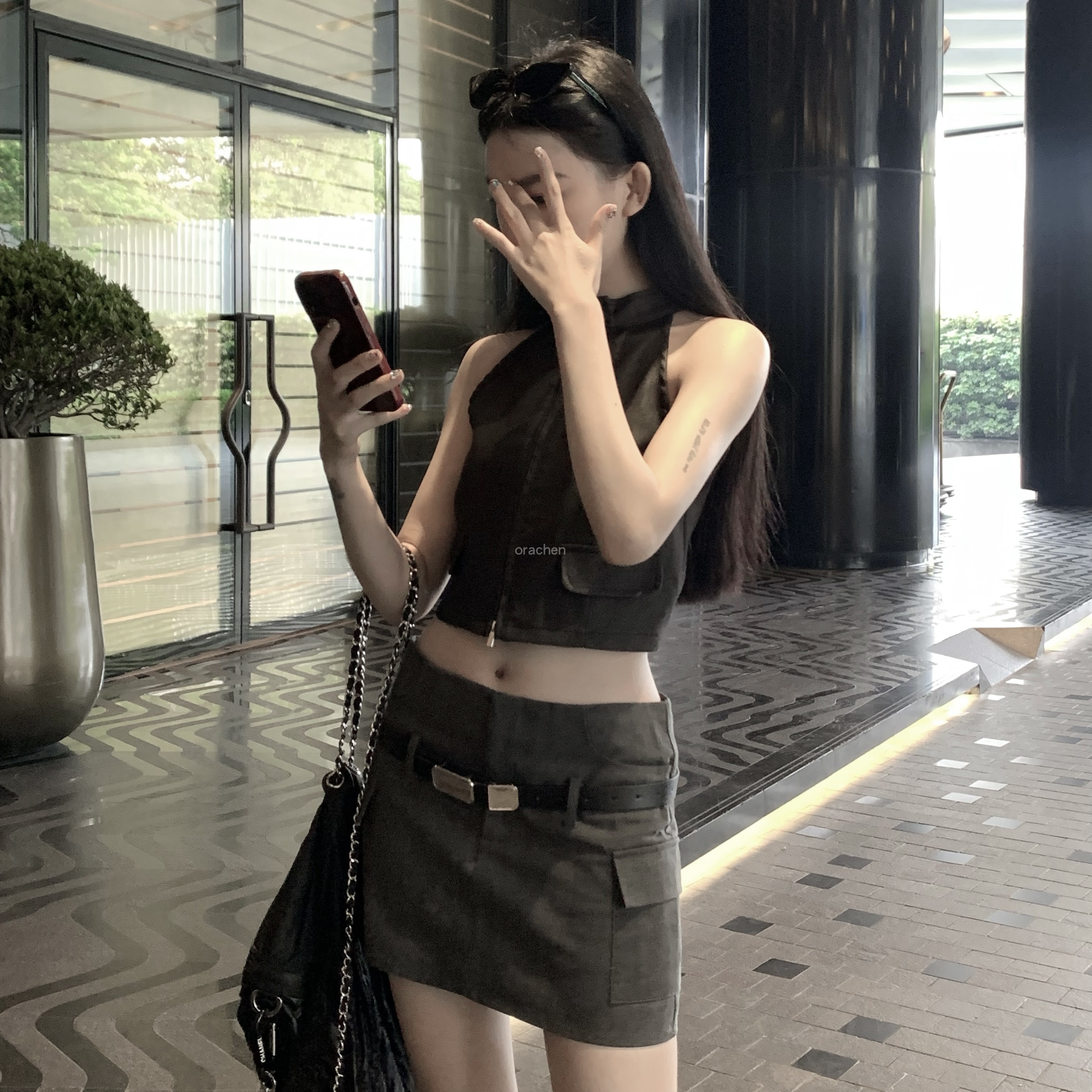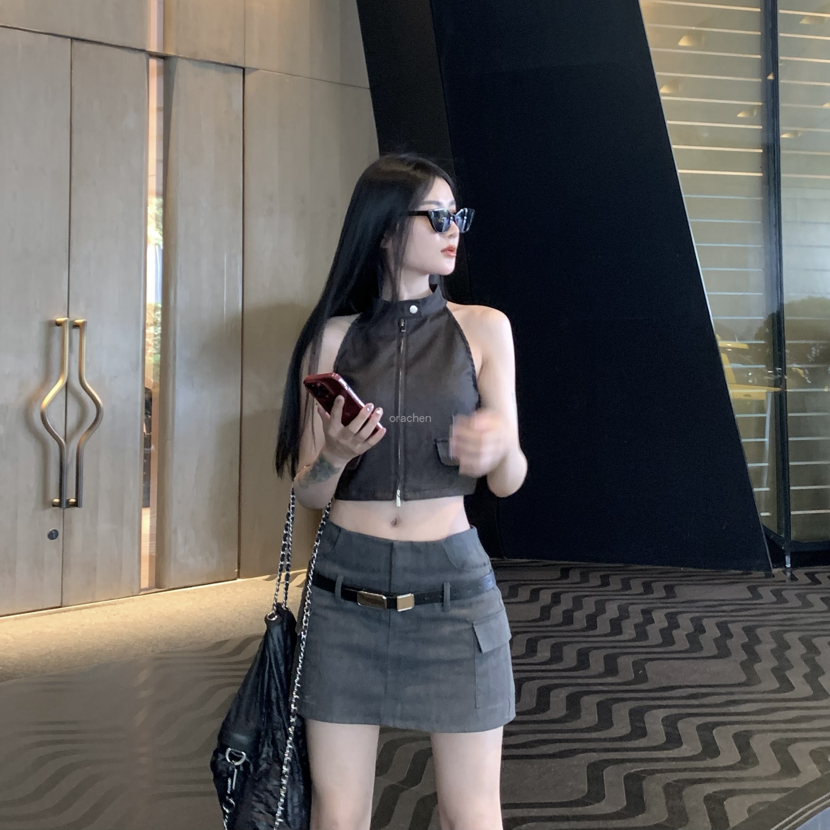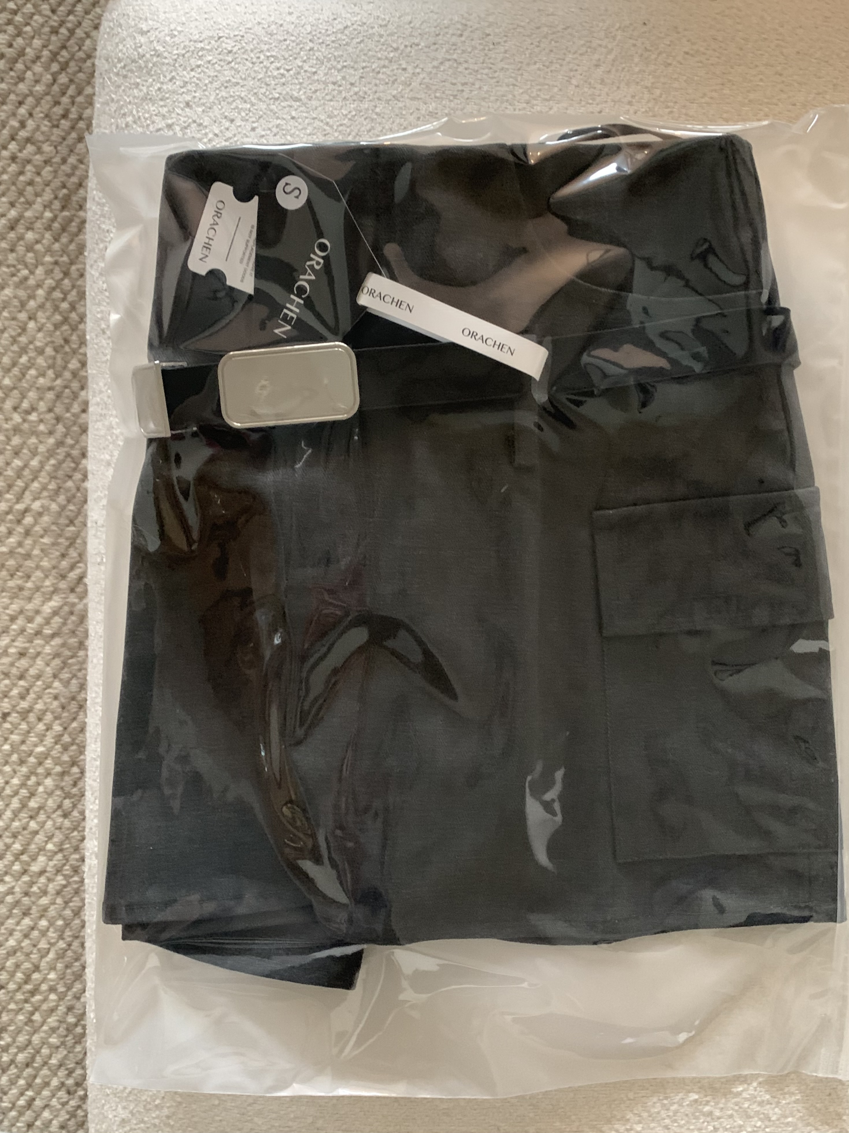 ORACHEN | chao顯瘦 深灰色質感人字紋水洗半身褲裙(帶腰帶 )