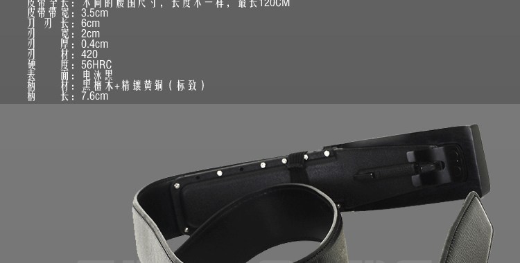小刀可以在不需松皮带的情况下快速抽出,以便应急使用。同时皮带也可当甩鞭使用,具有远近的攻击和防卫效果。