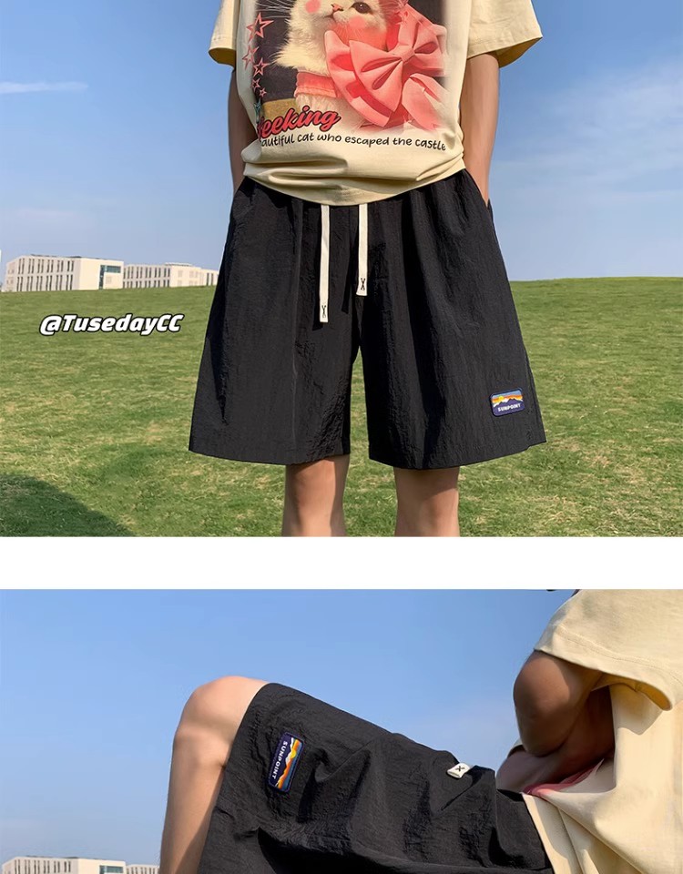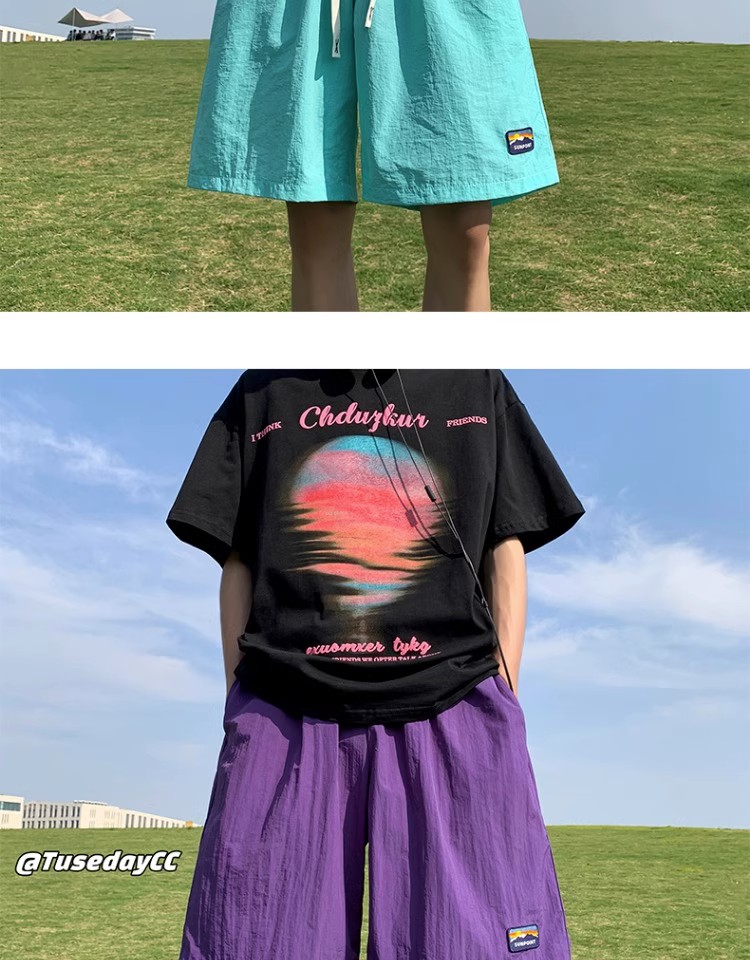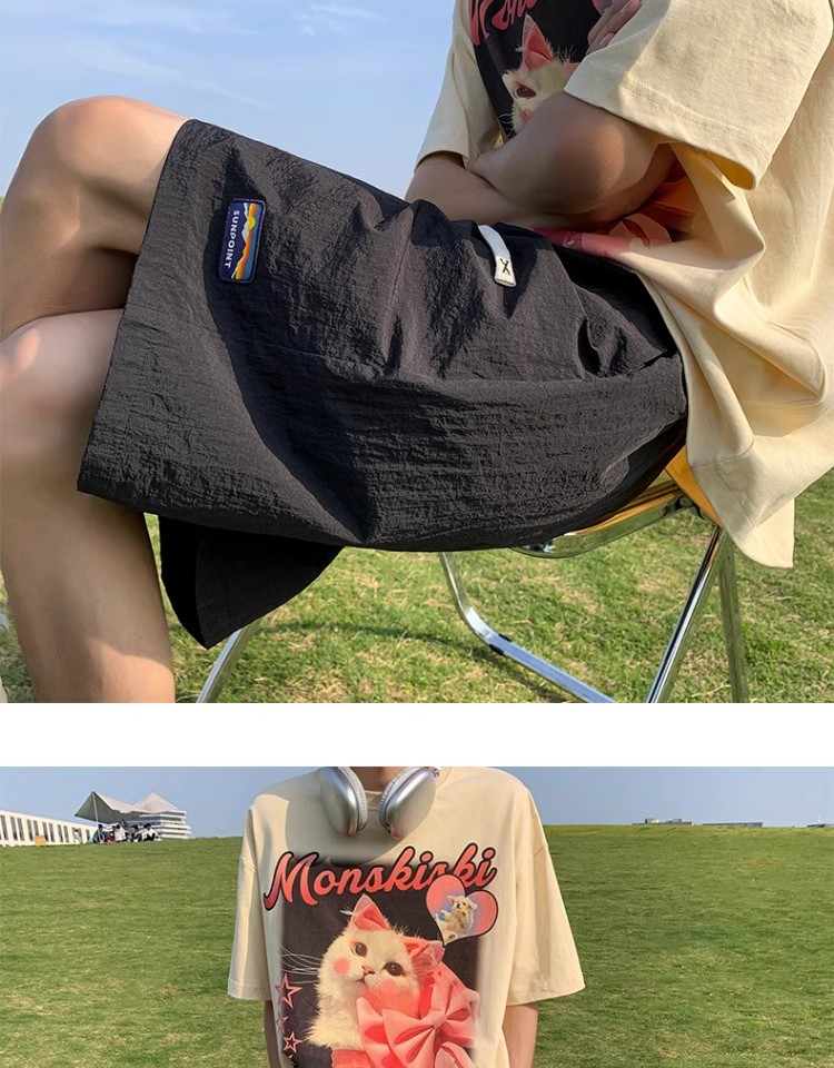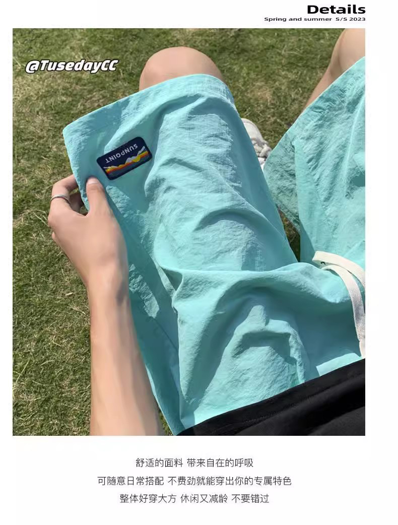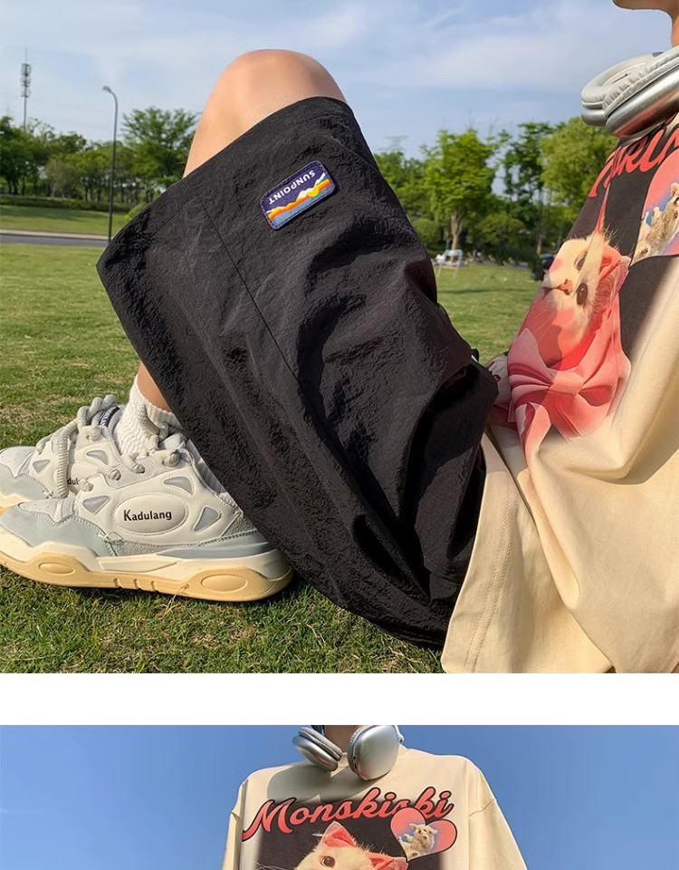 多巴胺速乾運動短褲女2023新款夏季五分褲薄款闊腿五分褲子休閒寬鬆
